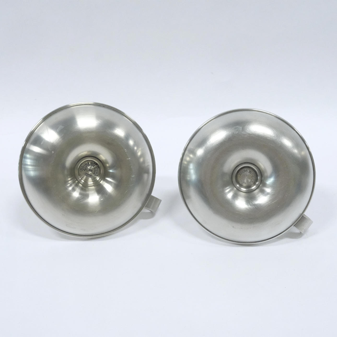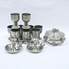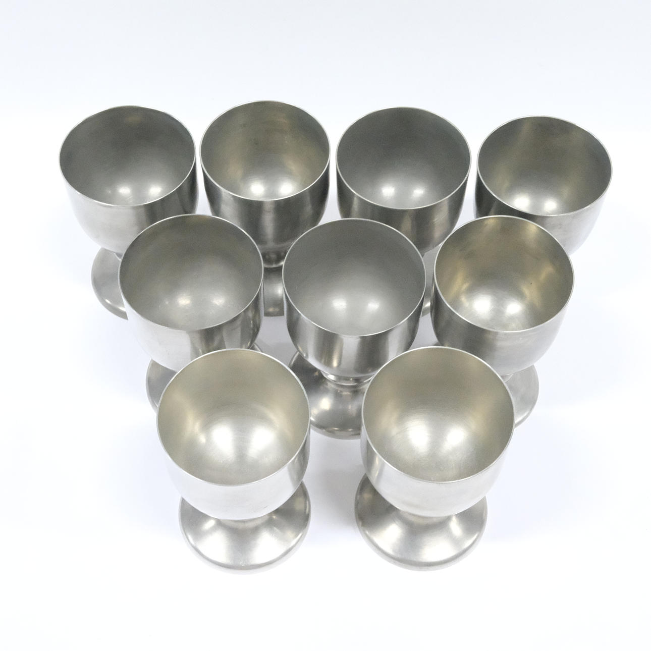Ljung Uti Lund, ni vinglas, højde 13cm, et par natlysestager, højde 9cm. Ernst Svedbom, låg skål, højde 13cm, diameter 17cm.