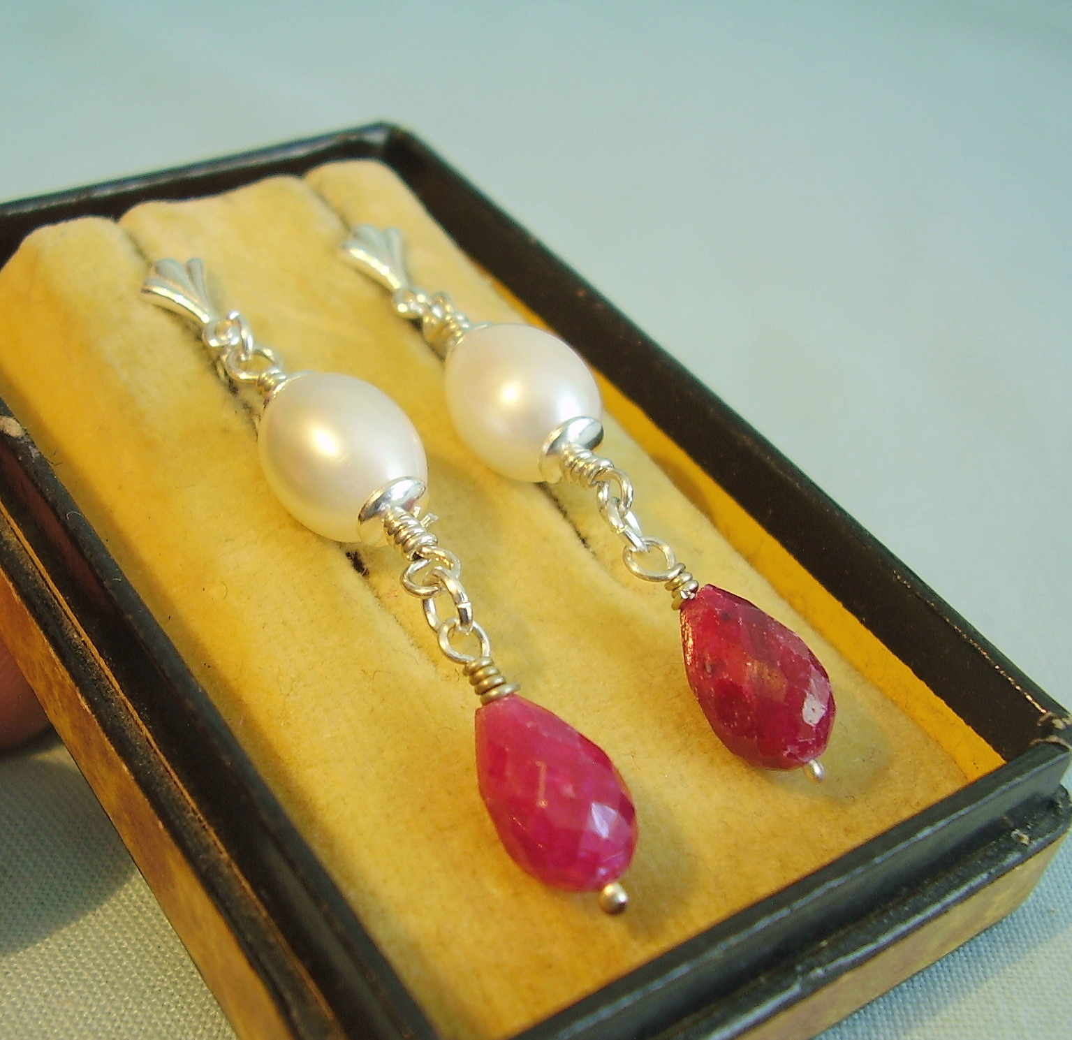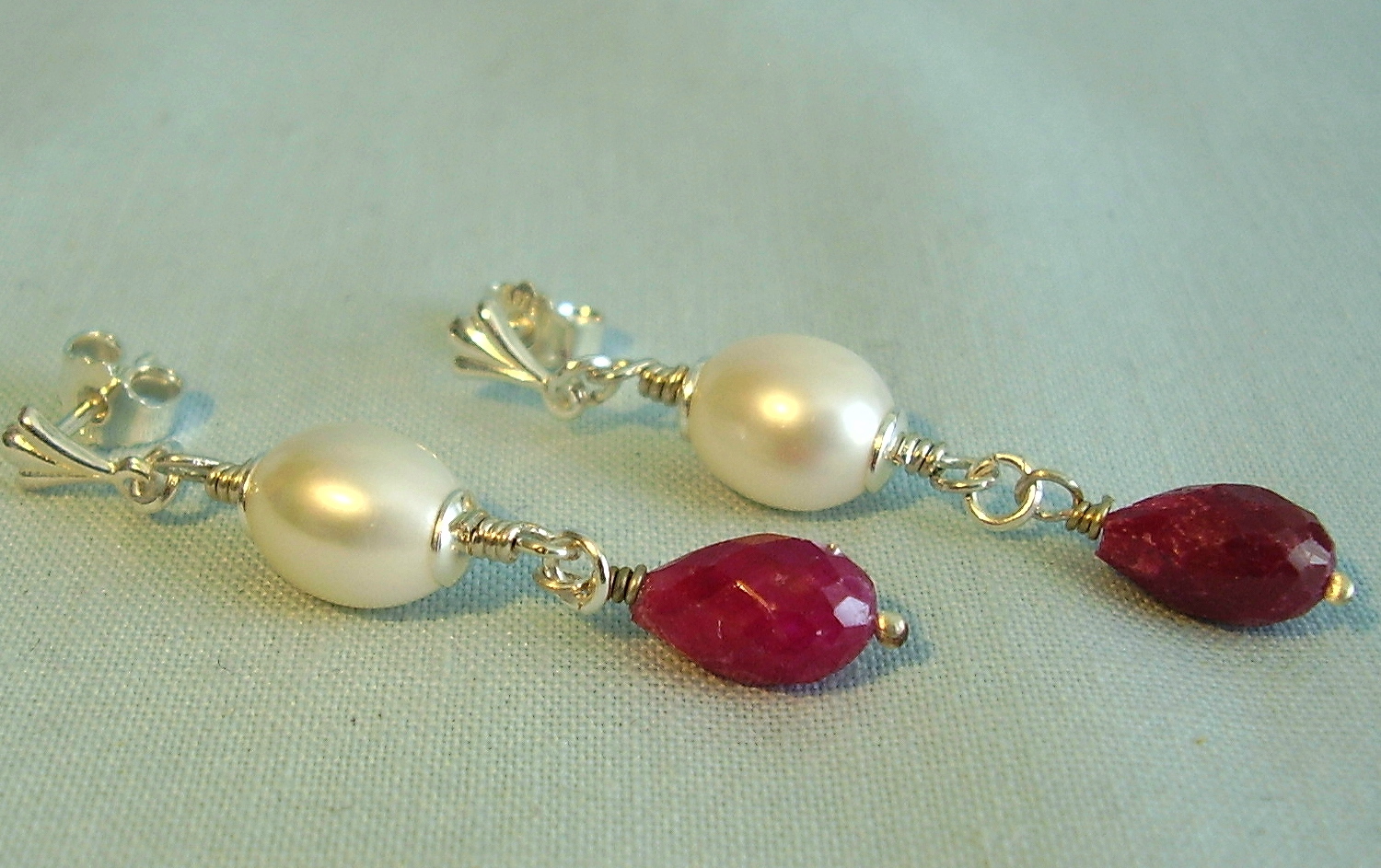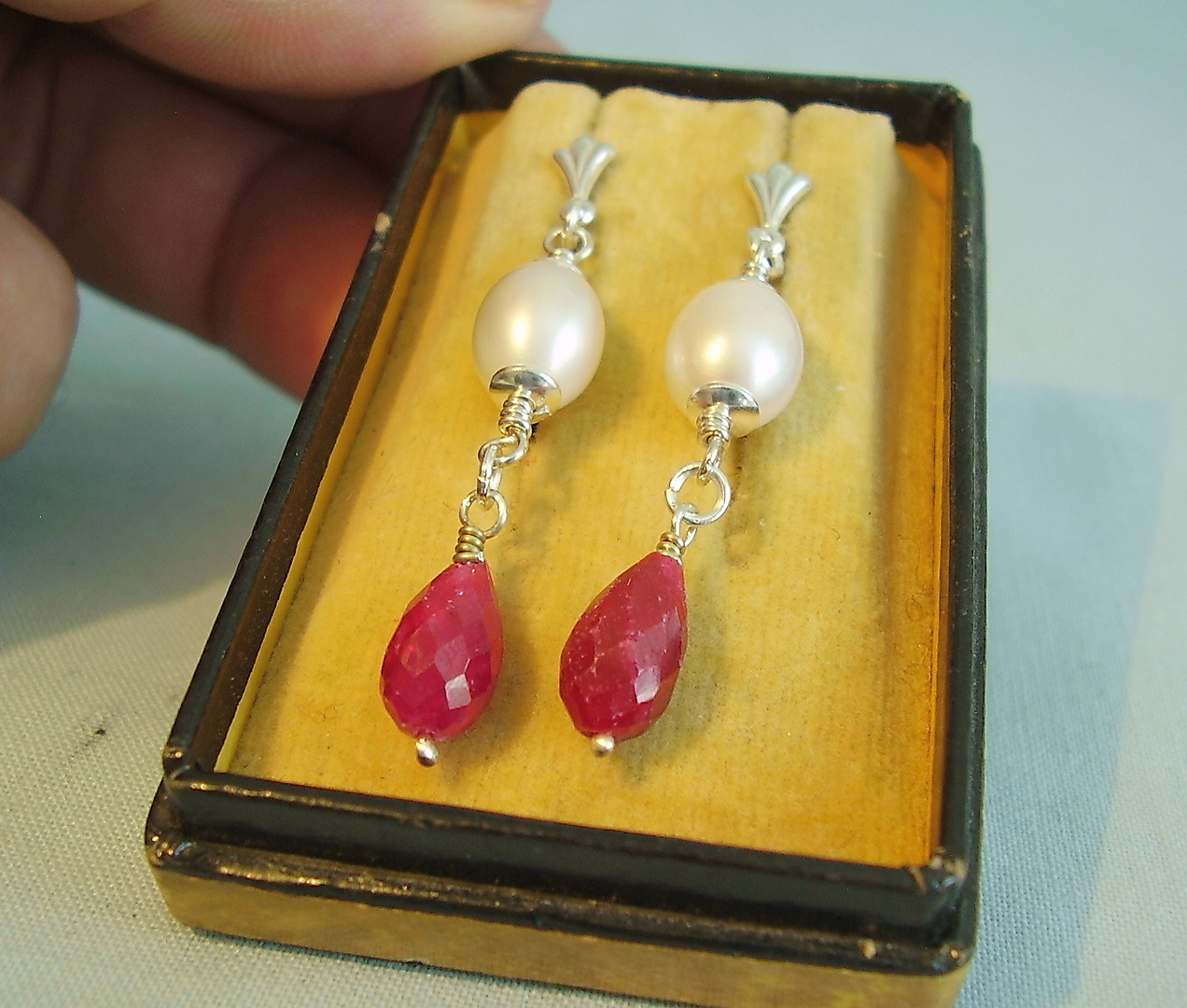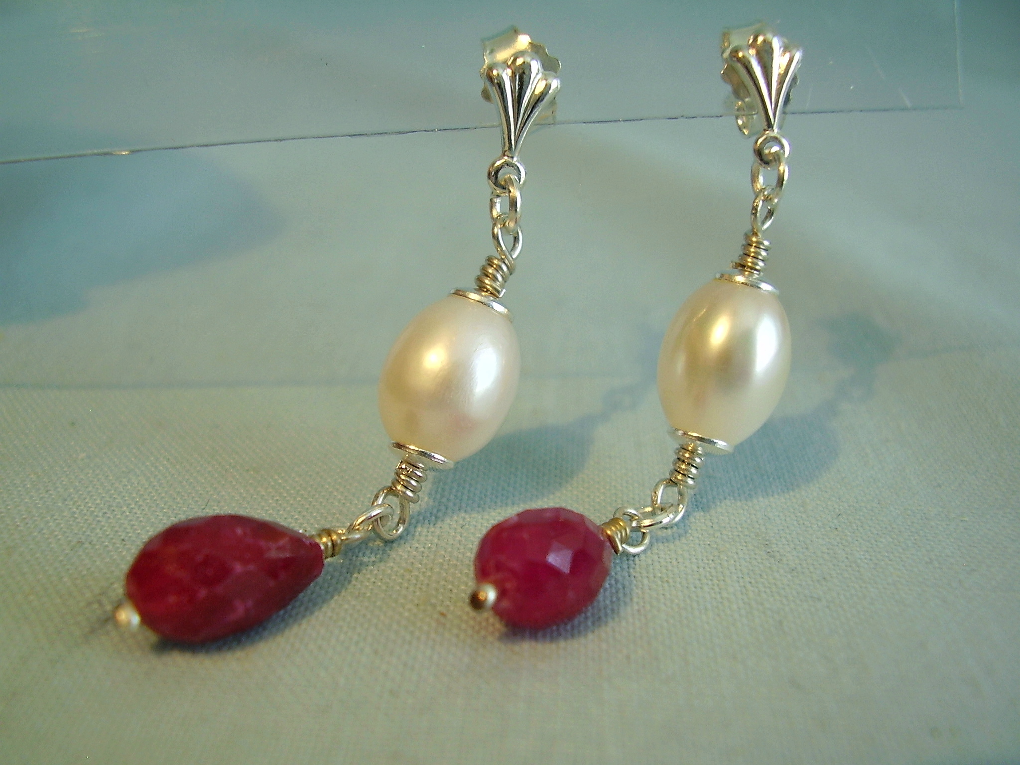 357681. RUBY - PERLE - ØRRINGE. Sølv og rubiner 6,7 ct.