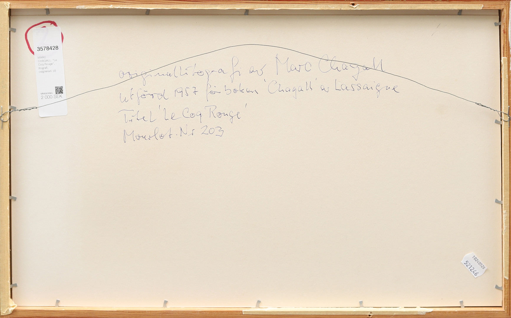 3578428. MARC CHAGALL. „Le Coq Rouge“, litografi, usigneret.