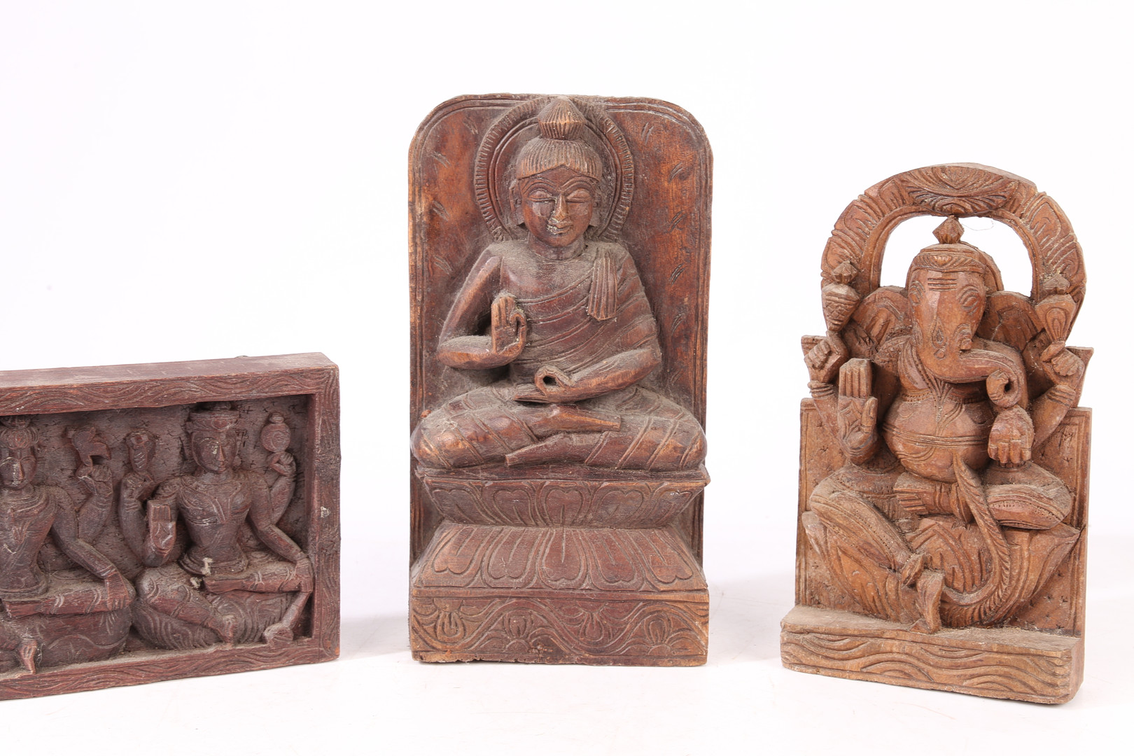 3579359. TRE INDISKE UDSKÅRNE TRÆPANELER.
