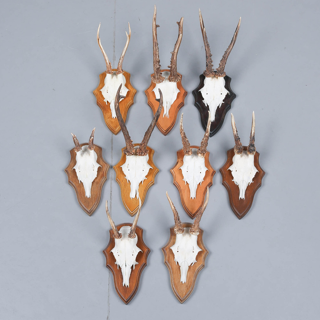 3579841. JAGTTROFÆER, 9 stk, buckhorn, hjorte.
