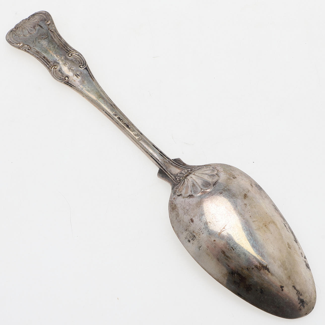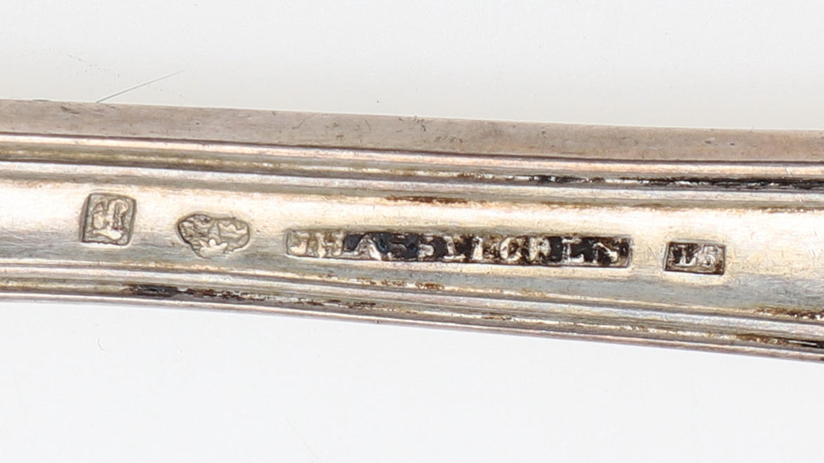 Længde ca. 22 cm, vægt 64,8 gram. Stemplet med kattefod, L5, J Hasselgren.