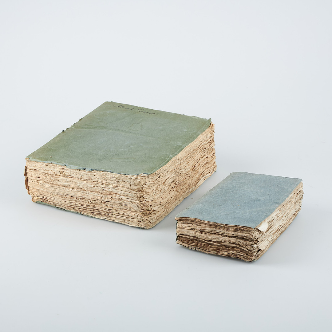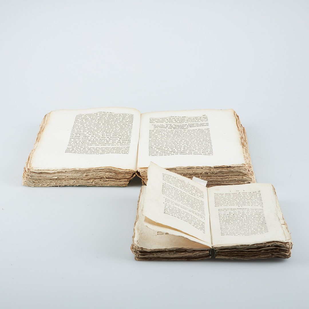3583528. Bøger, 2 stk, grå papiromslag, Sverige.