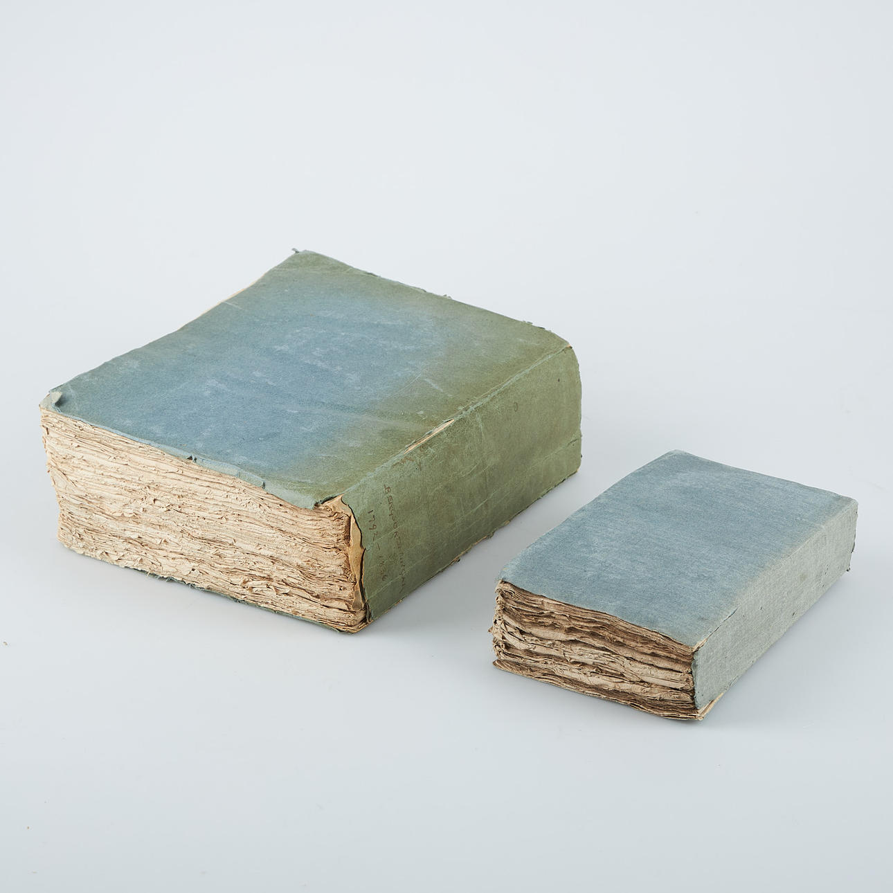 3583528. Bøger, 2 stk, grå papiromslag, Sverige.