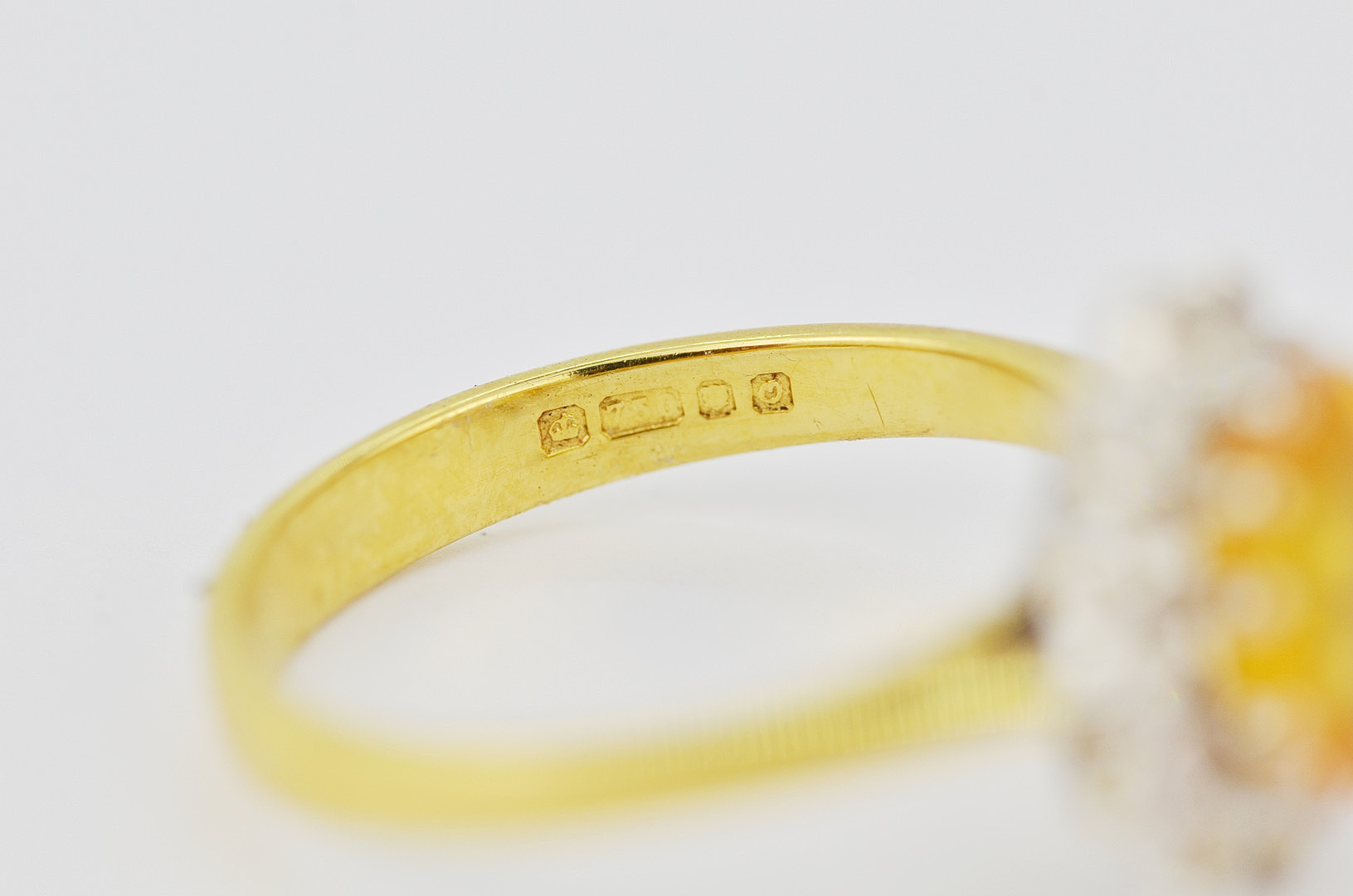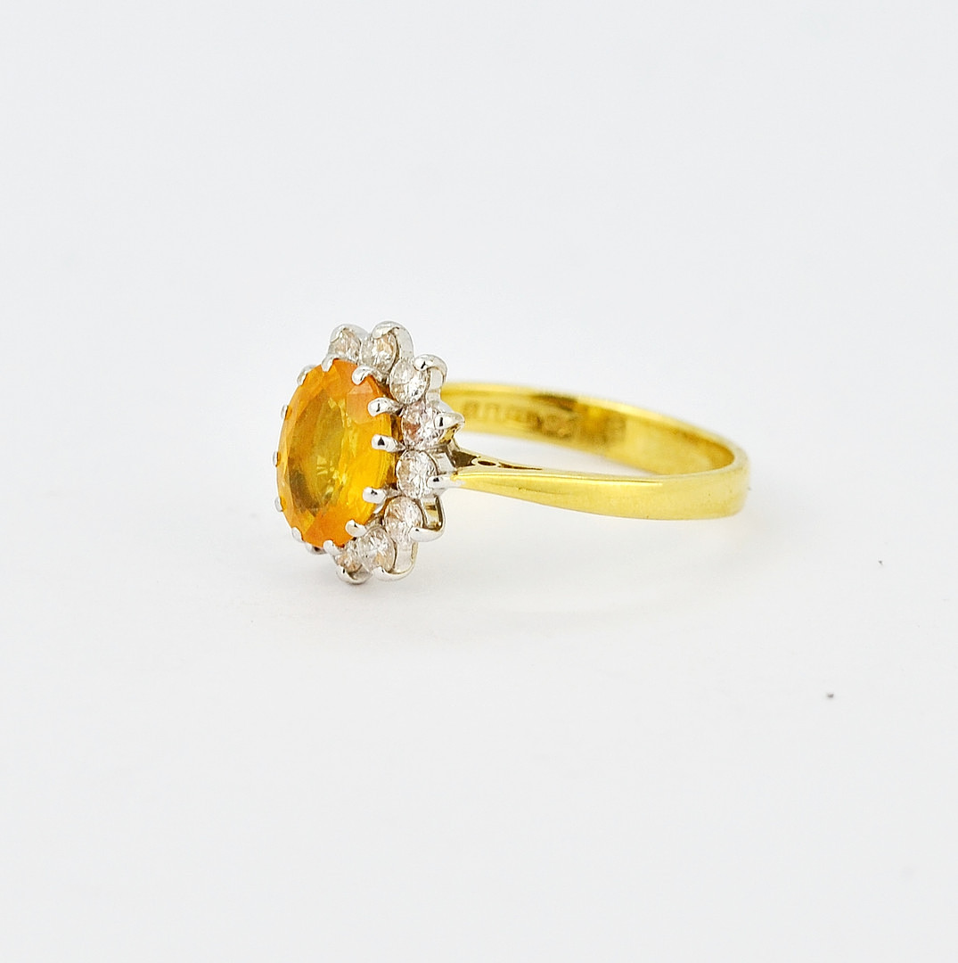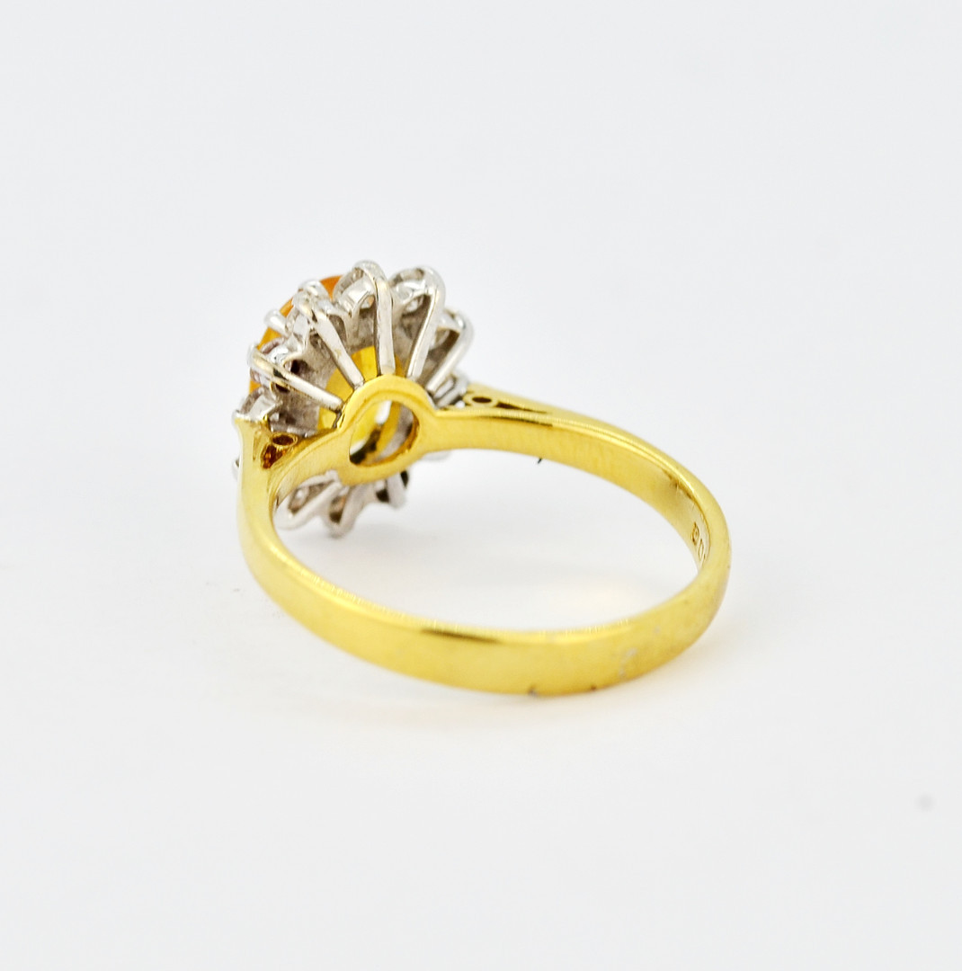 3584669. 18KT GUL SAFIR OG DIAMANT RING.
