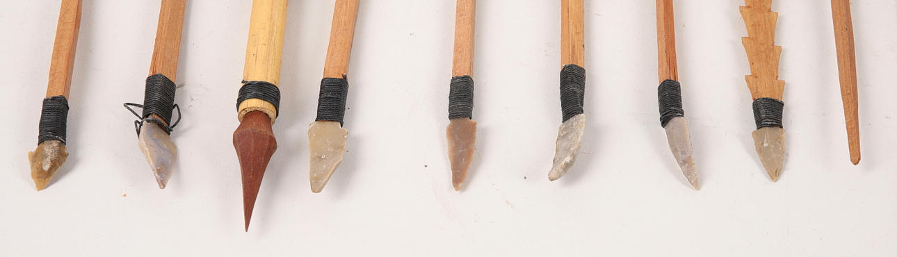 3585726. BUE MED PILE, bambus, træ & flint, 20. århundrede.