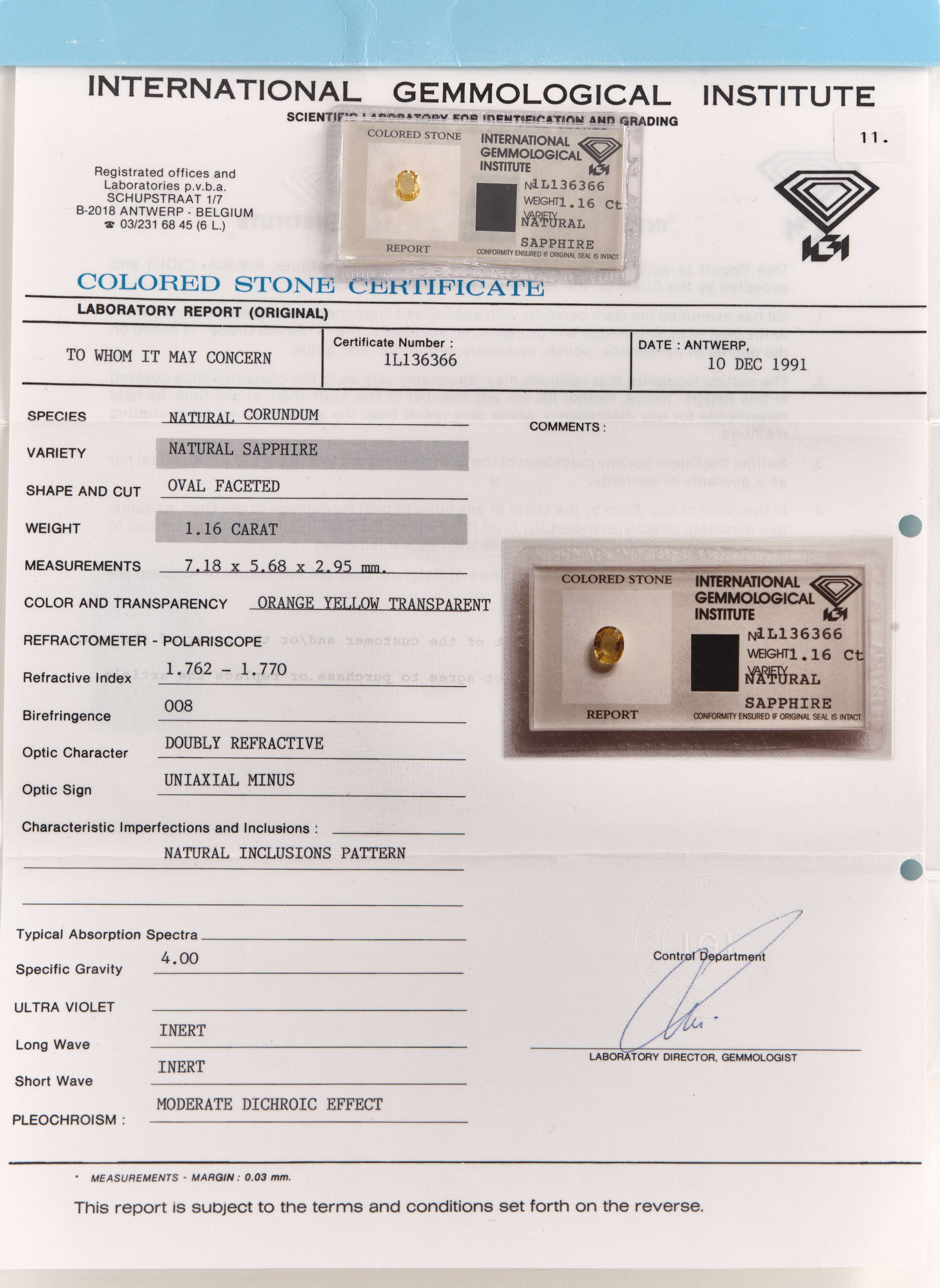 3588276. SAFIR, orange gul, ca 1.16ct.