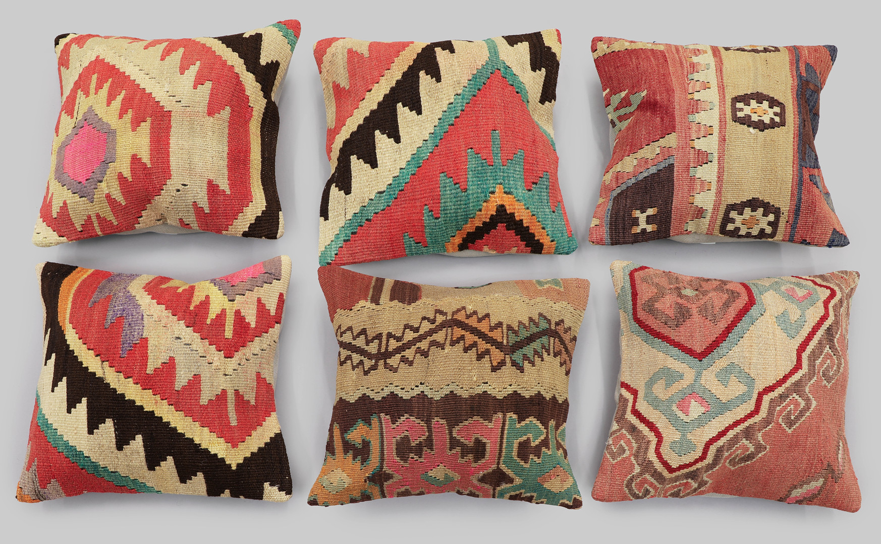 3589082. PUDEBETRÆK. 6 stk, kelim, ca. 40 x 40 cm.