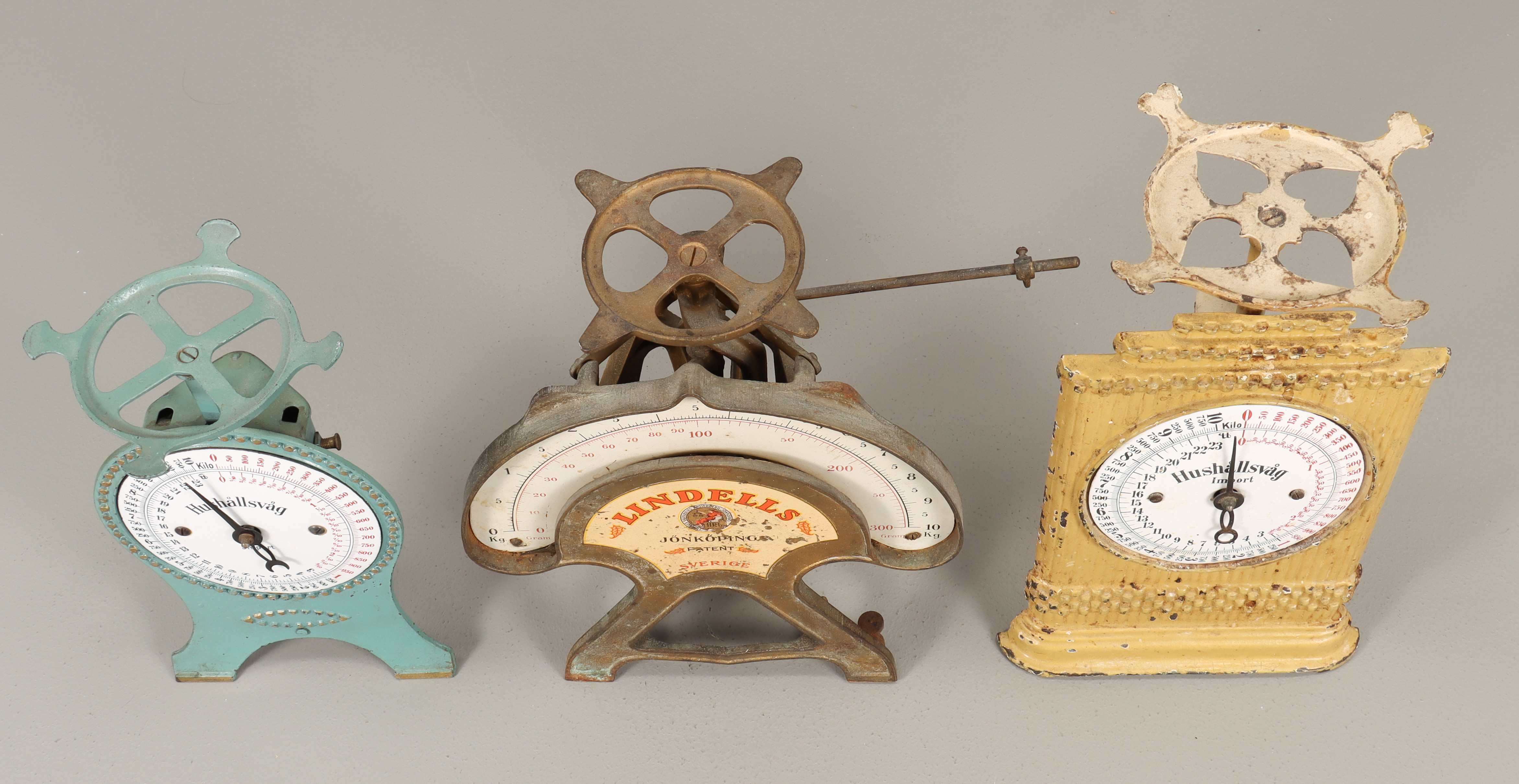 3589935. Husholdningsvægte, tre stk. 20. århundrede.
