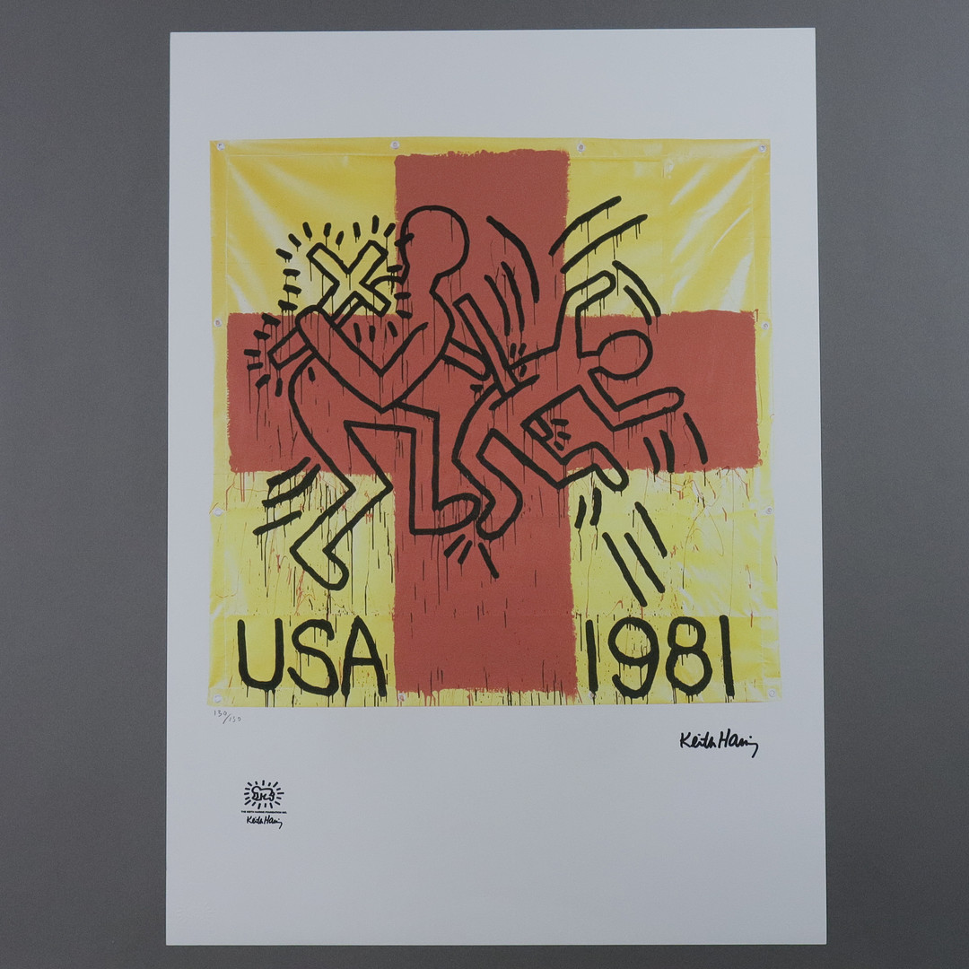 3590414. - HARING, KEITH. EFTER. - Uden titel (USA 1981), farve offset litografi.