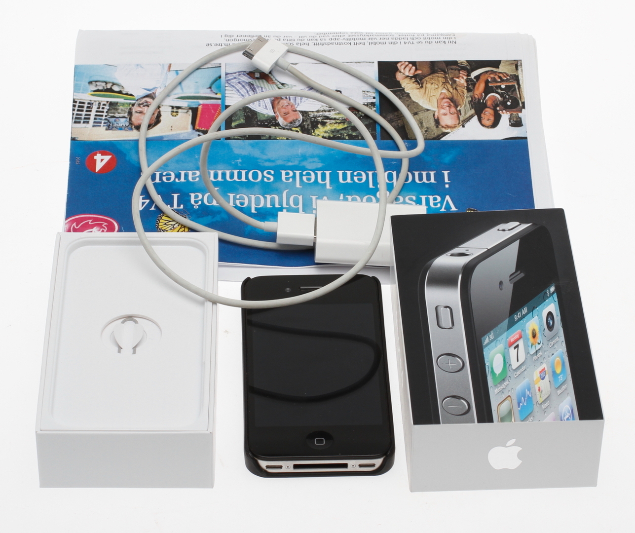 35910. iPhone 4 med tilbehør, original æske.