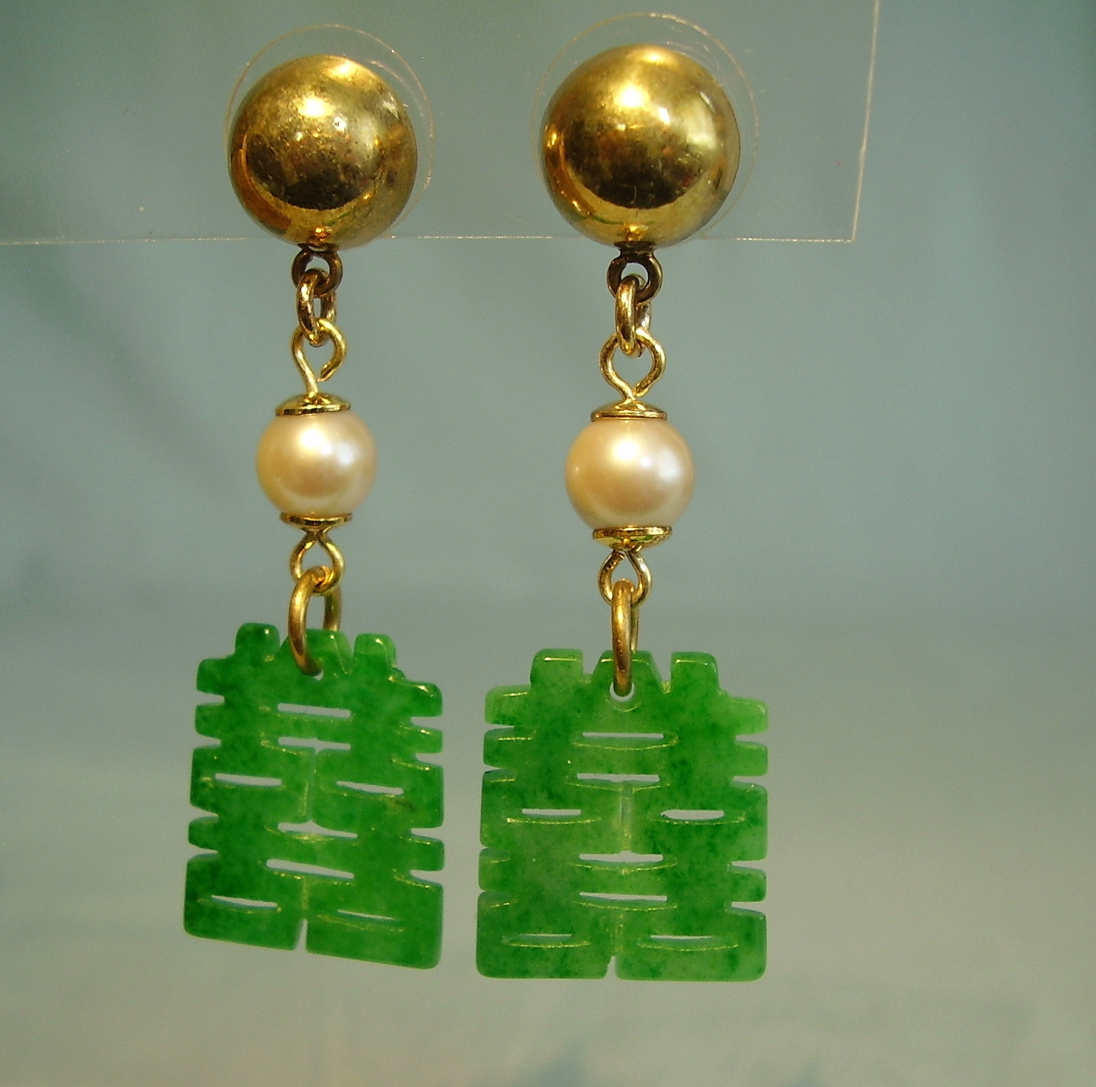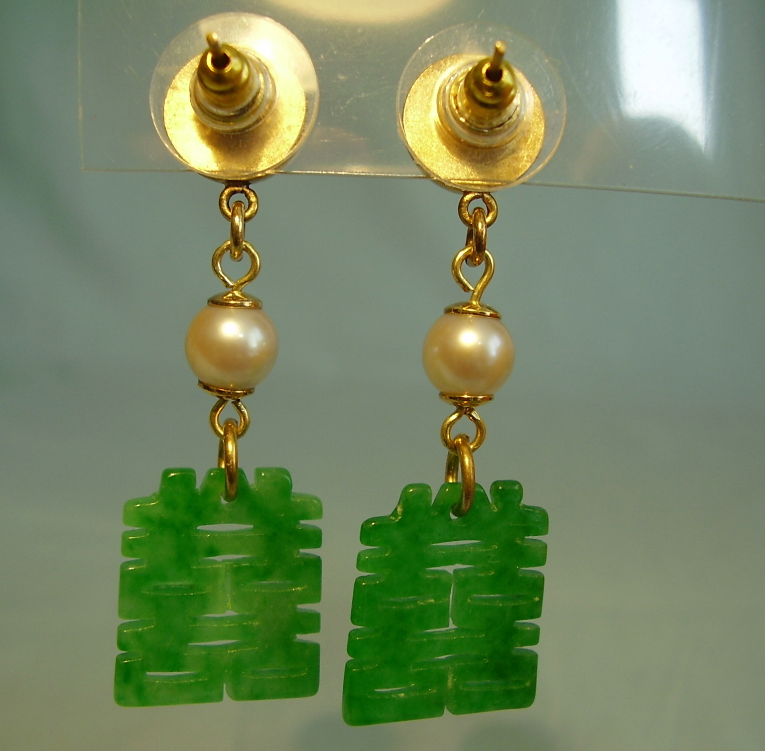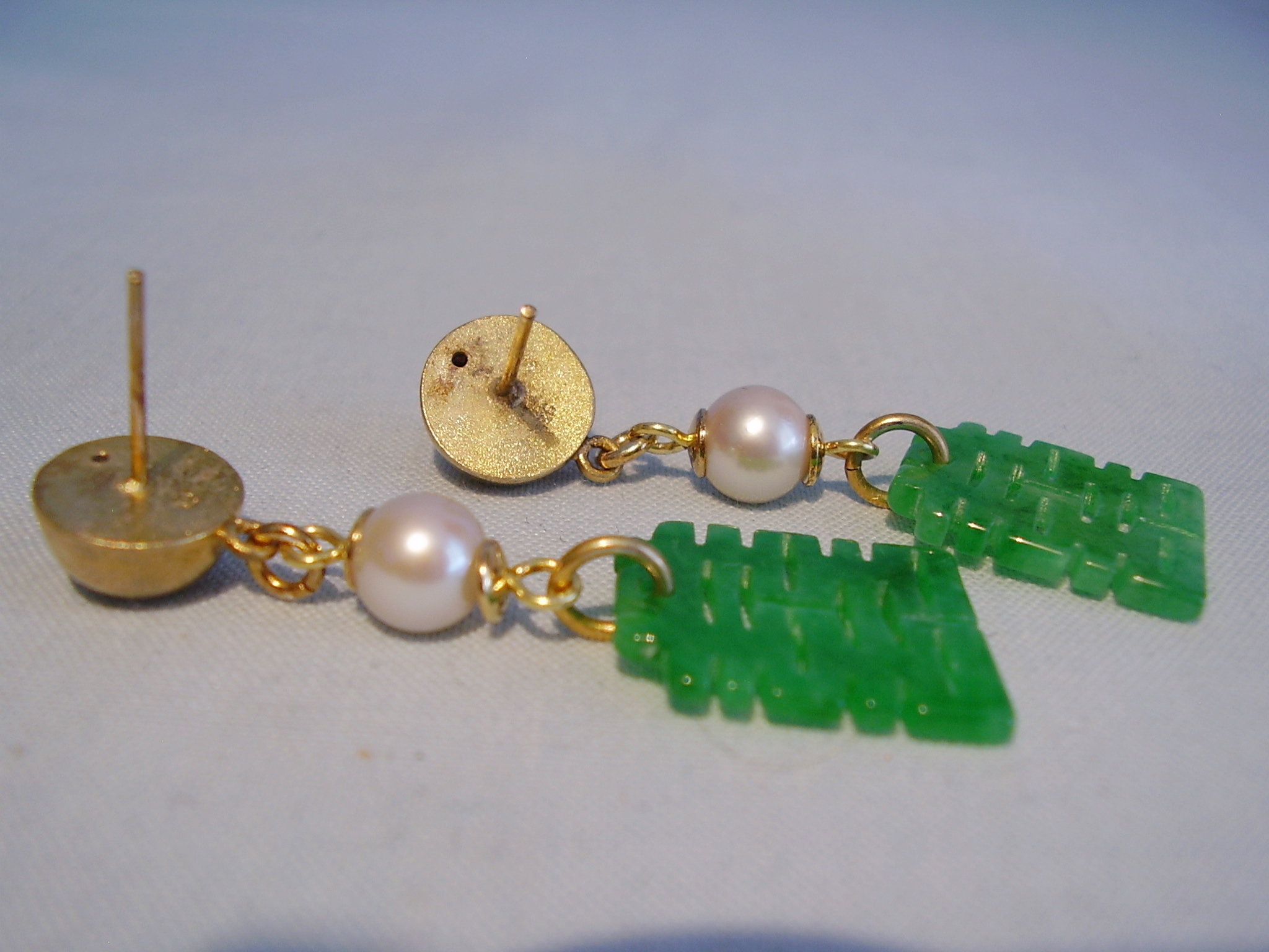 359511. ØRERINGE MED HÅNDSKÆRET JADE-PLADER.