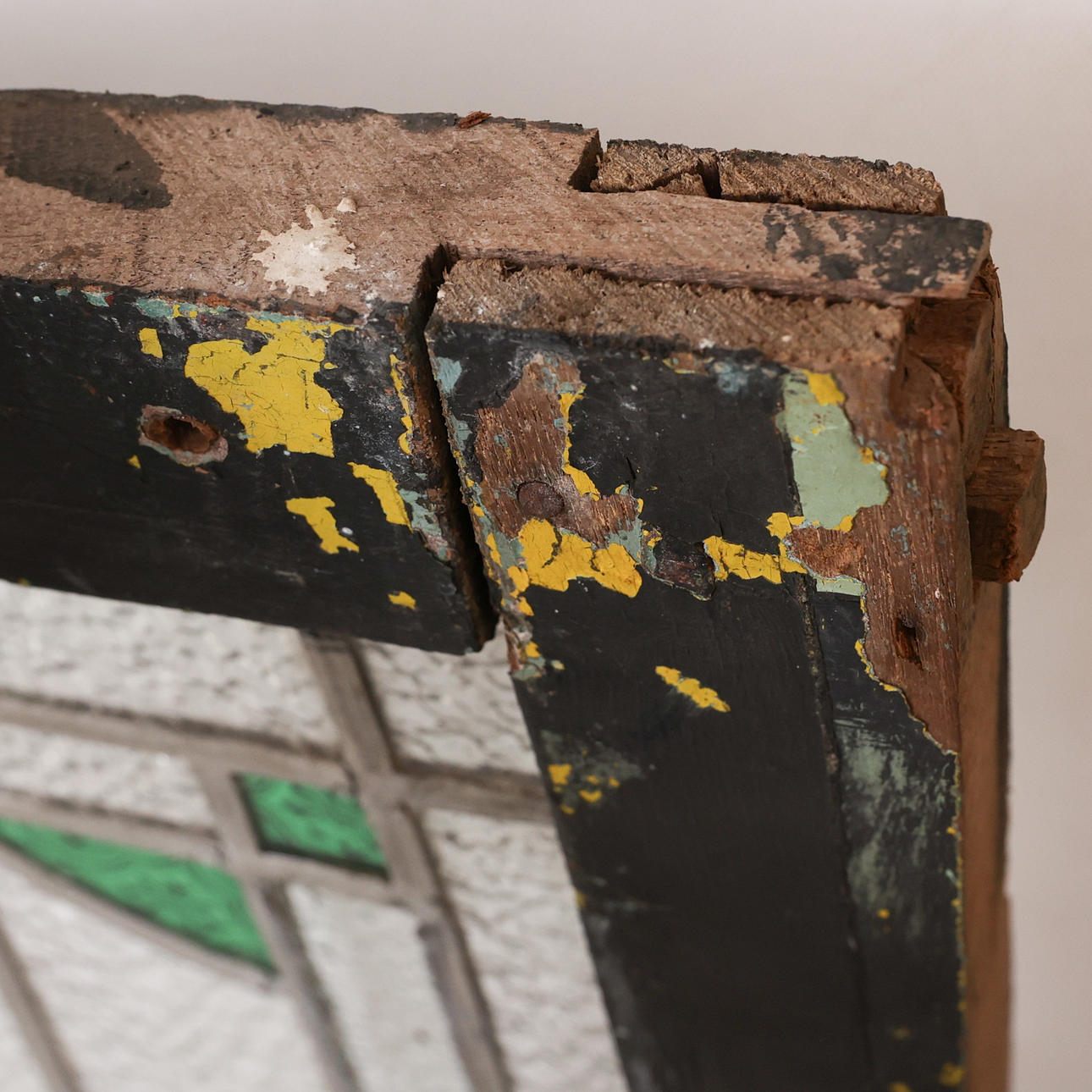 Brugsslitage, renoveret, lille stykke glas mangler.