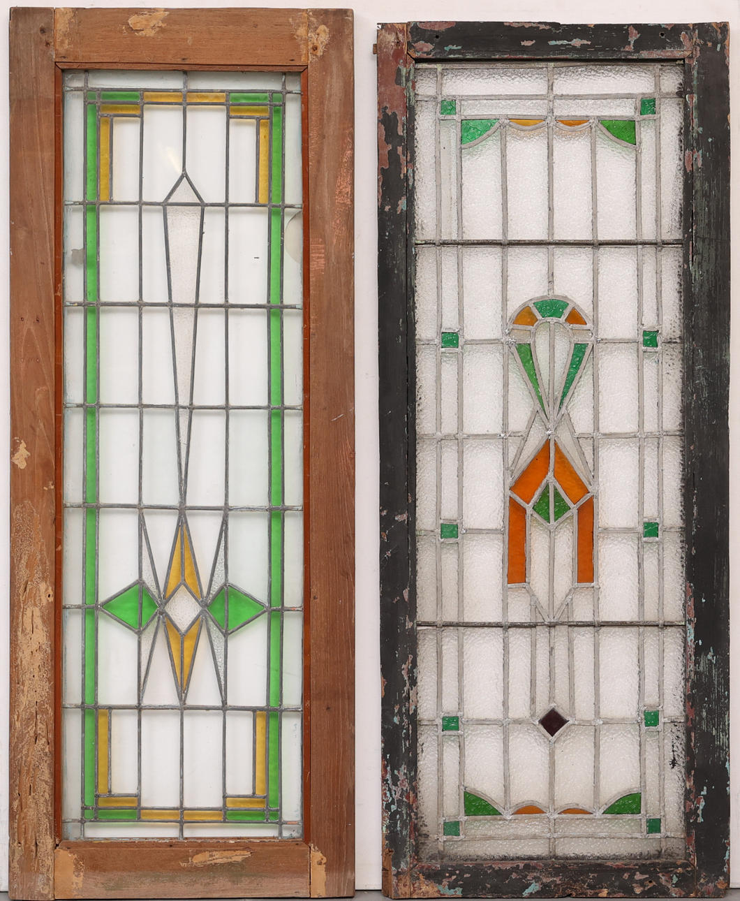 Et sæt af 2 vinduer, farvet glas, jugendstil.