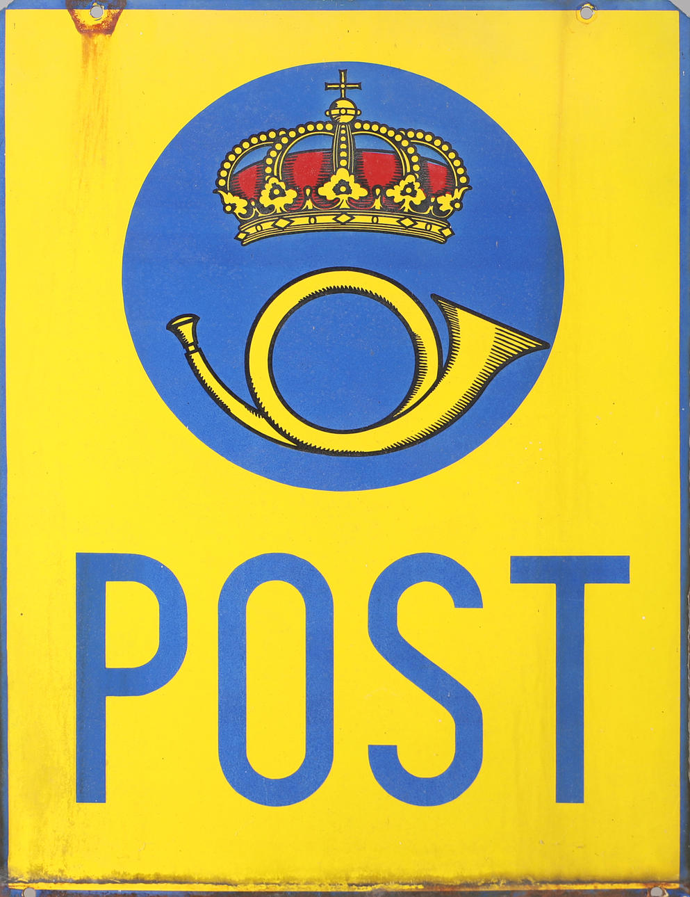 3595912. EMALJESKILT, „Post“, dobbeltsidet.