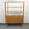 Todelt reol med 3 skuffer og en hylde på den øverste del, 2 skydedøre med en baghylde og 4 skuffer på den nederste del.