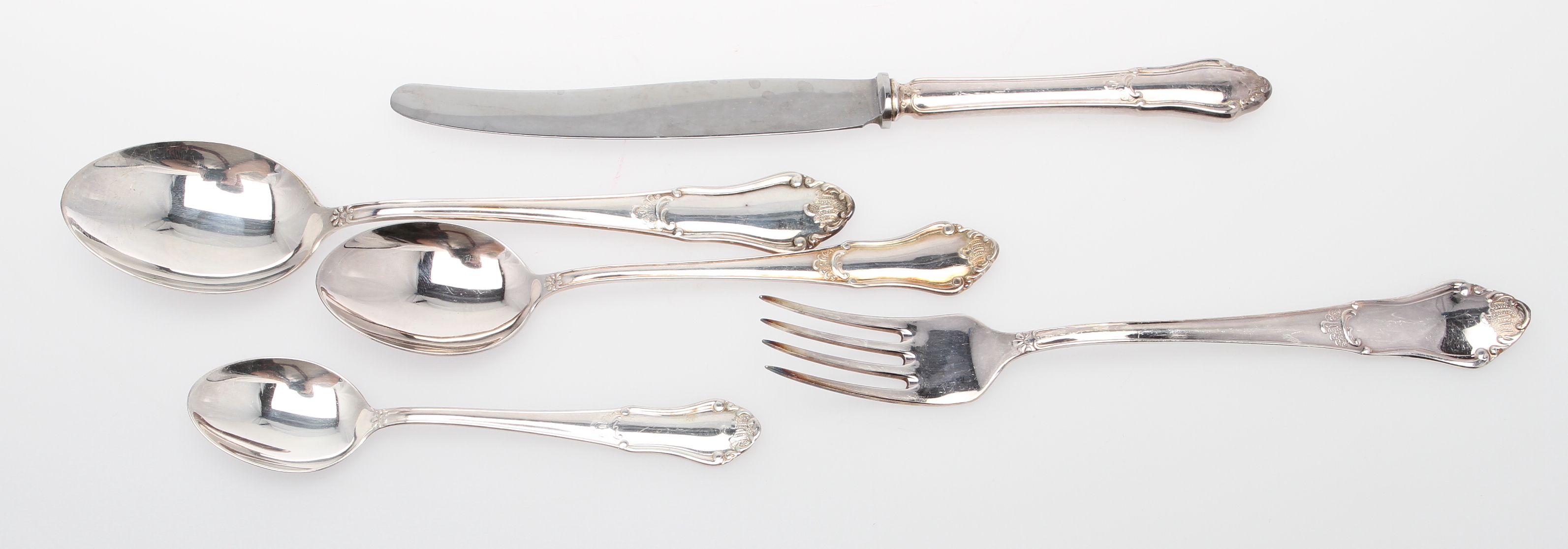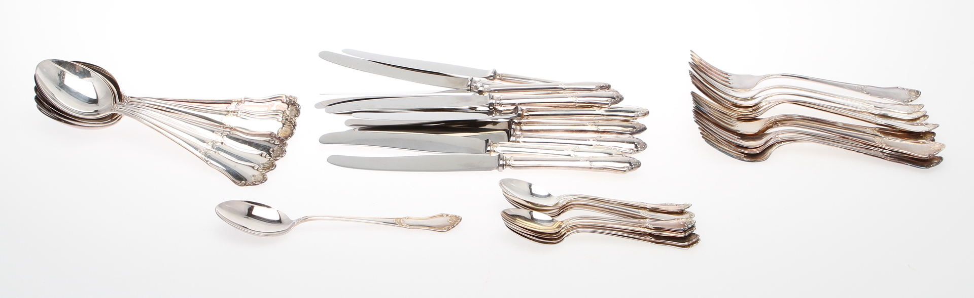 36004. BESTIKSERVICE, 46 dele, sølv. Vægt ca 1600 gram.