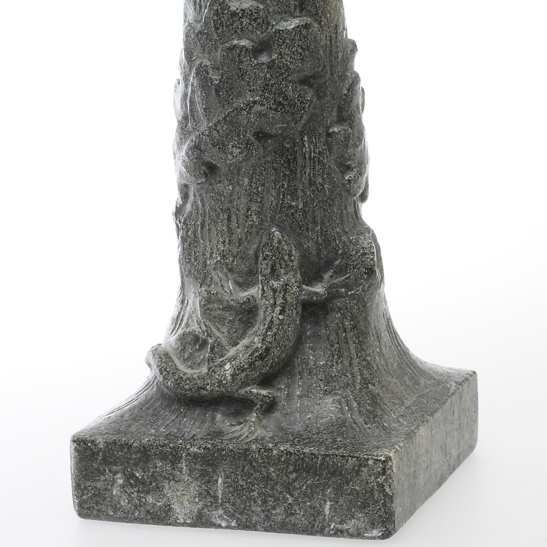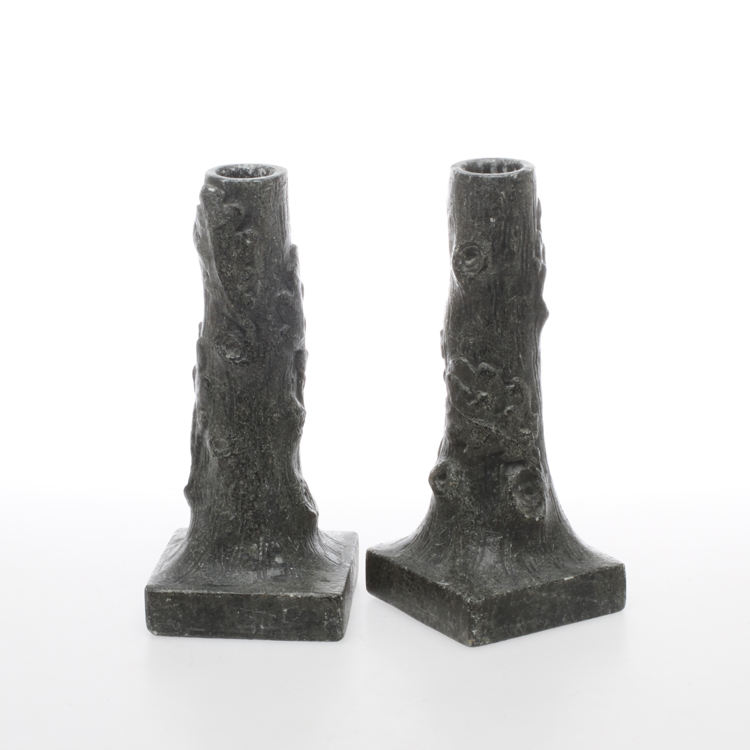 360201. Lysestager, 2 stk, fedtsten, signeret Ojs.