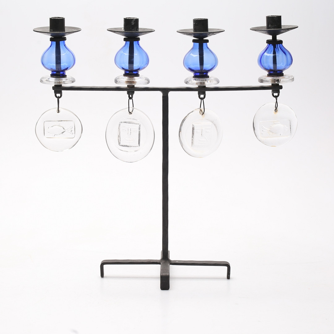 3603722. ERIK HÖGLUND. En kandelaber af glas og smedejern, Boda.