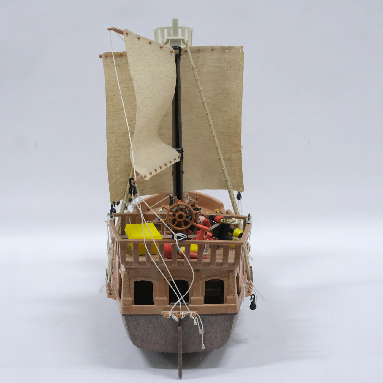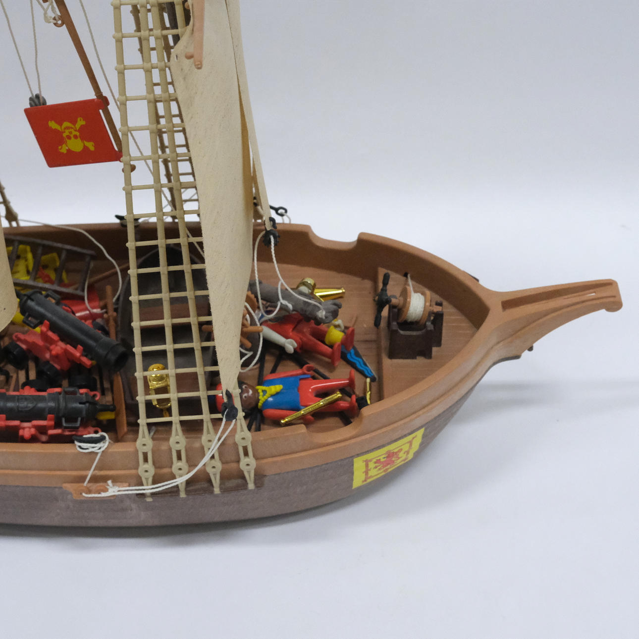 Tilbehør inklusive kanonfigurer mm, længde skib 52cm, højde 42cm.