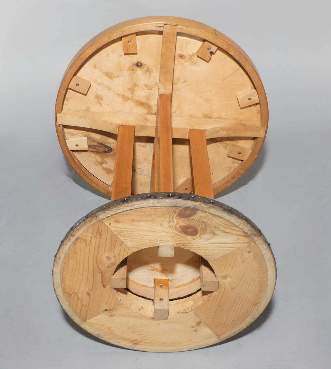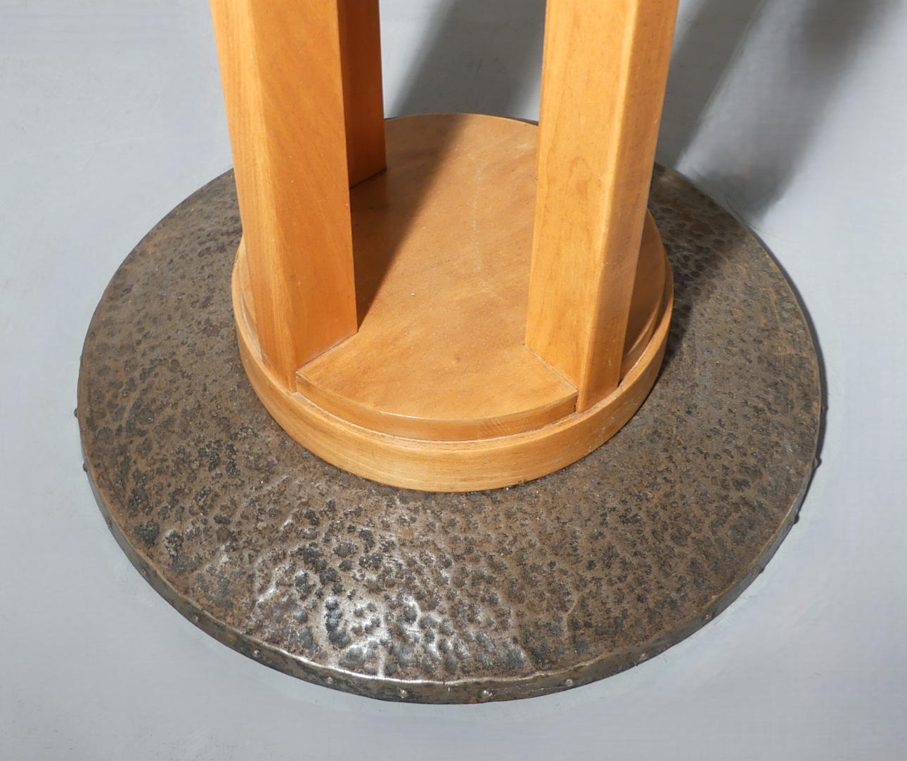 Bord med metalskodd fod, højde ca. 75 cm, diameter ca. 70 cm