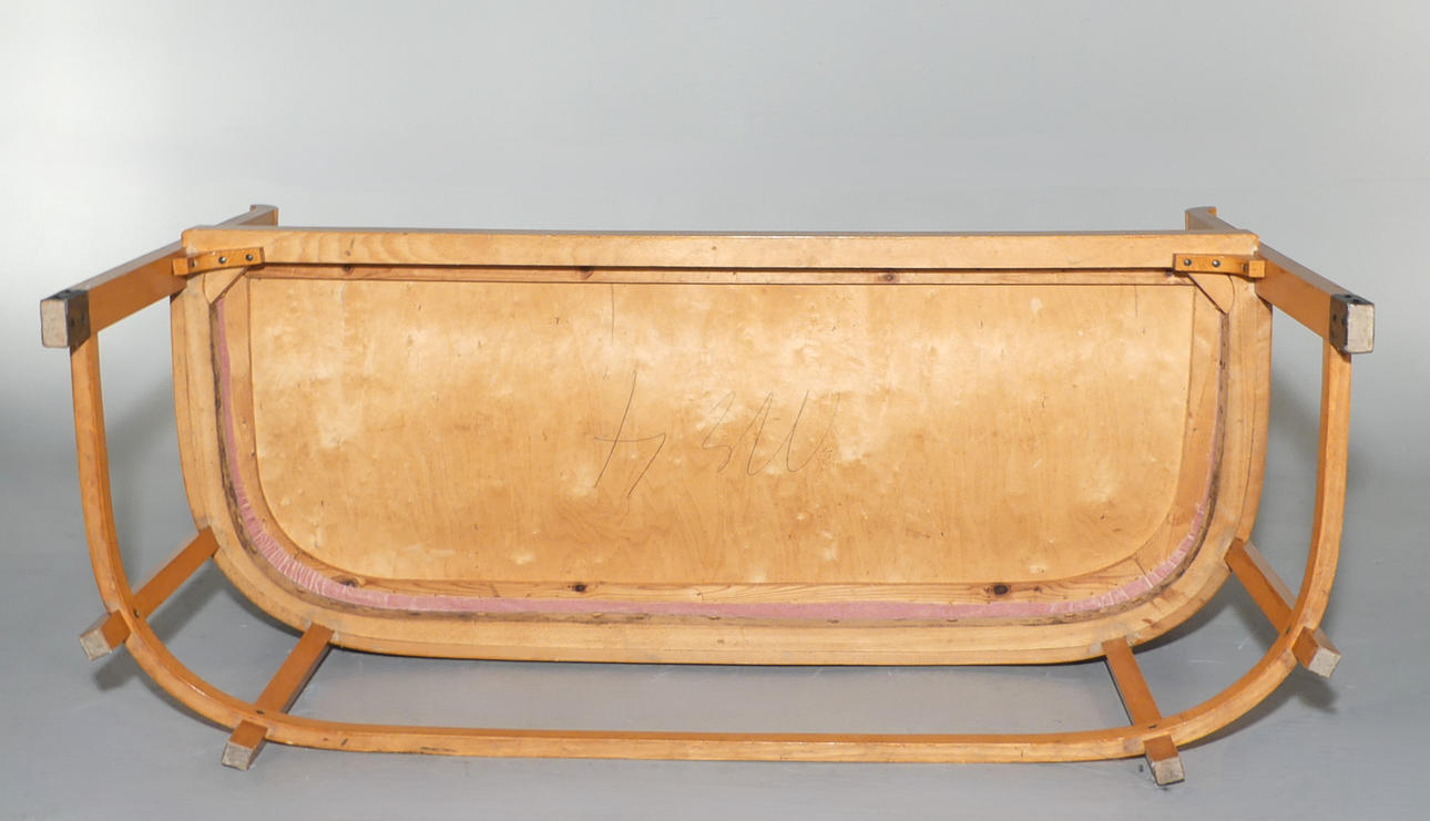 Alle sæder betrukket med lyserød plys, metalskodde forben.