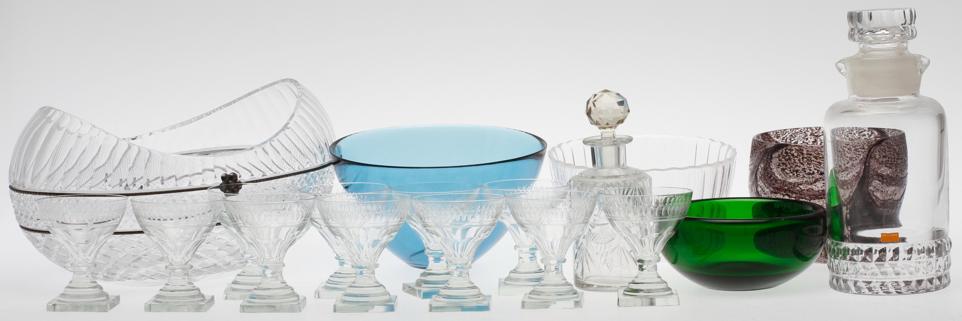 36062. GLAS, 18 dele, bl.a. "Säby" Strömbergshyttan, Orrefors.
