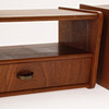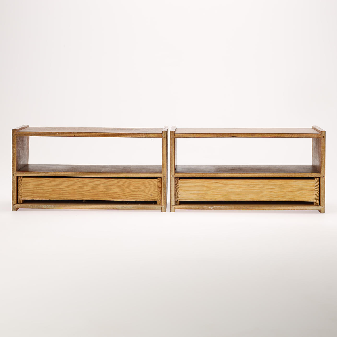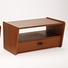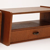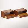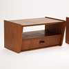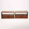 Par sengebord af teak med hylde og skuffe, greb af messing.