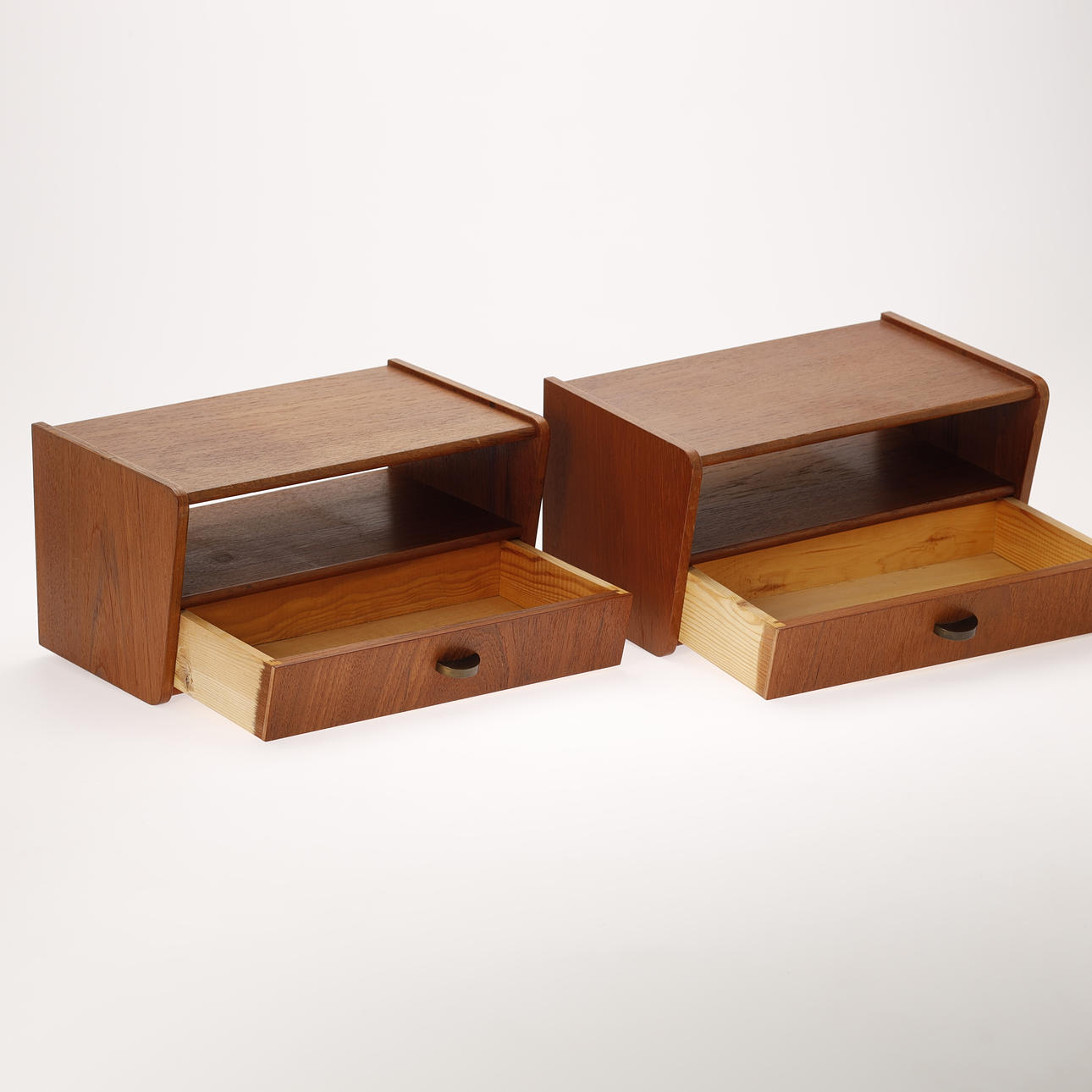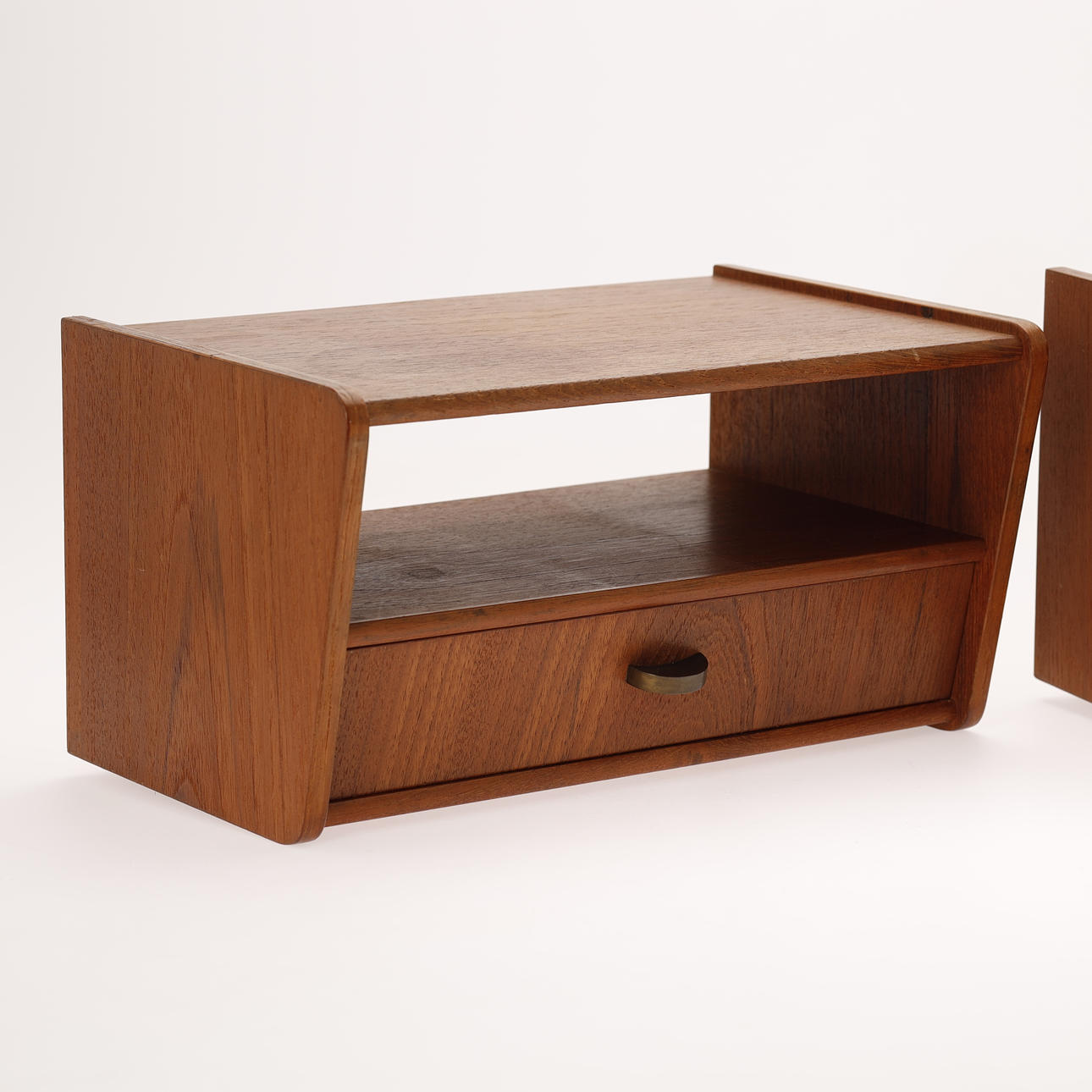 3606406. Et par væghængte sengeborde, teak og messing. Danmark. ca 1950-60 (2).