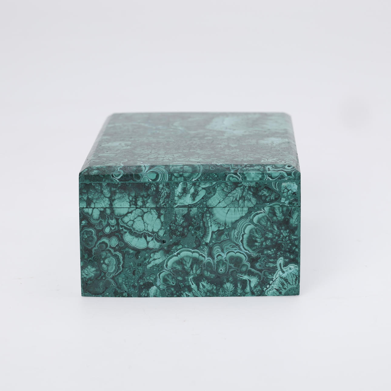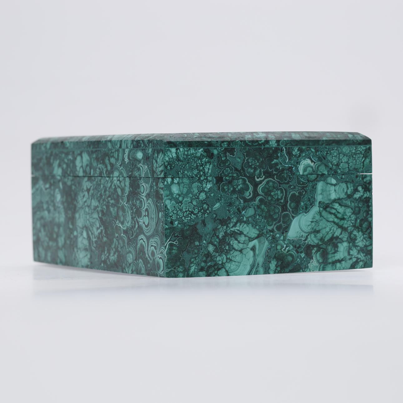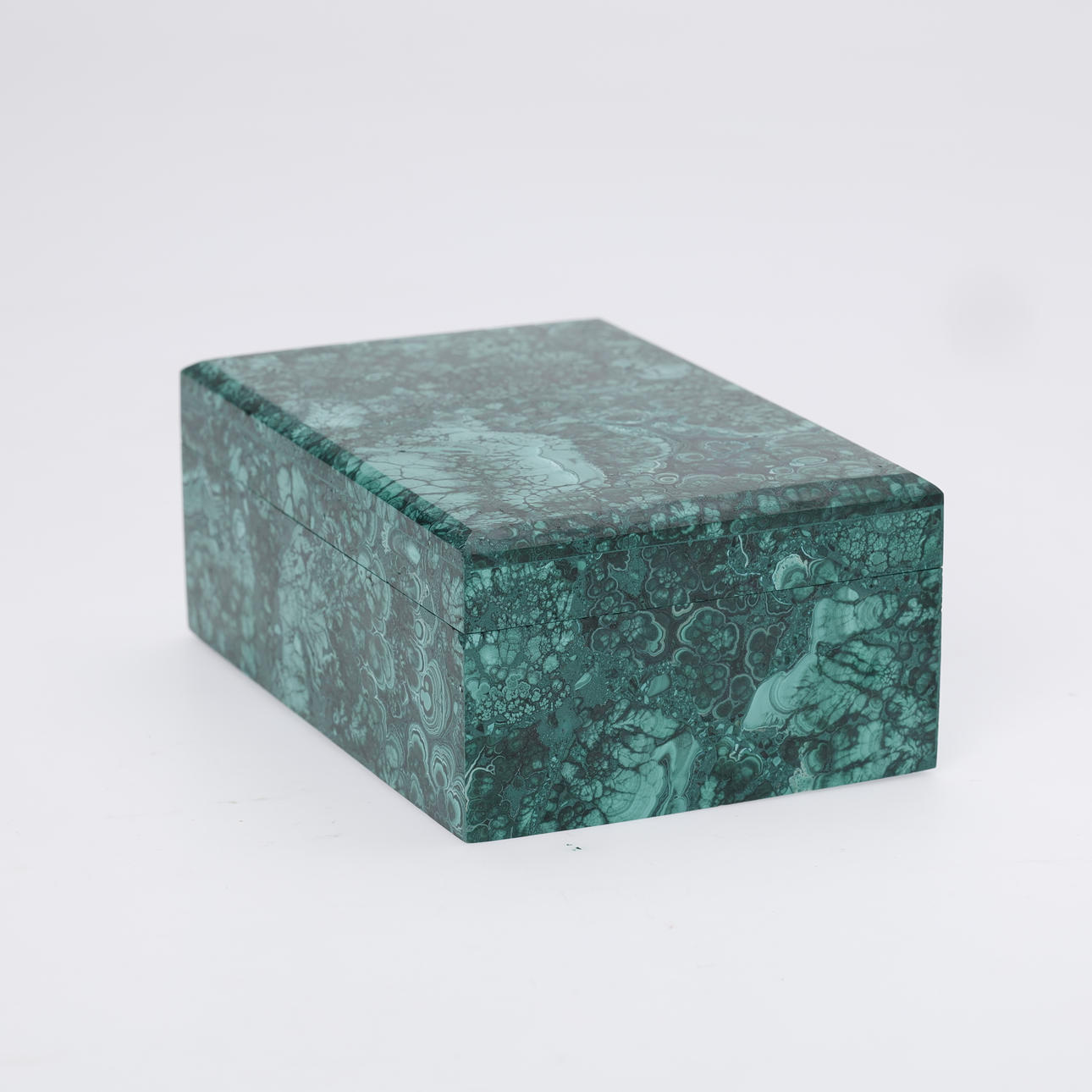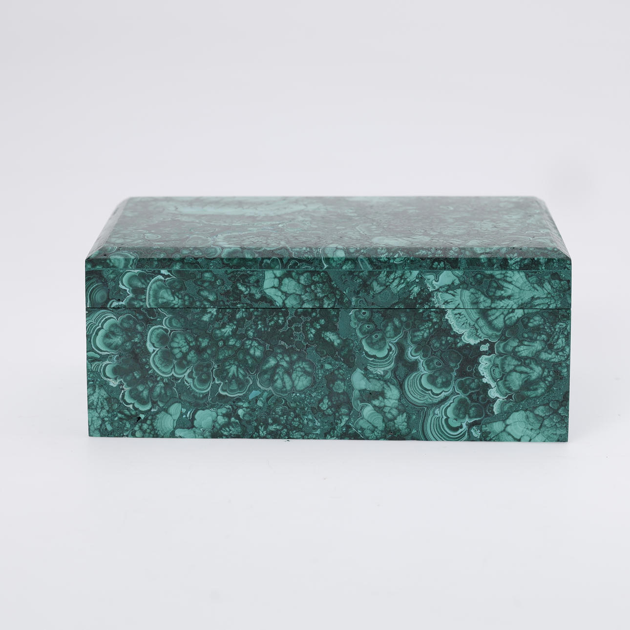 Rektangulært låg skrin af grøn malakit.