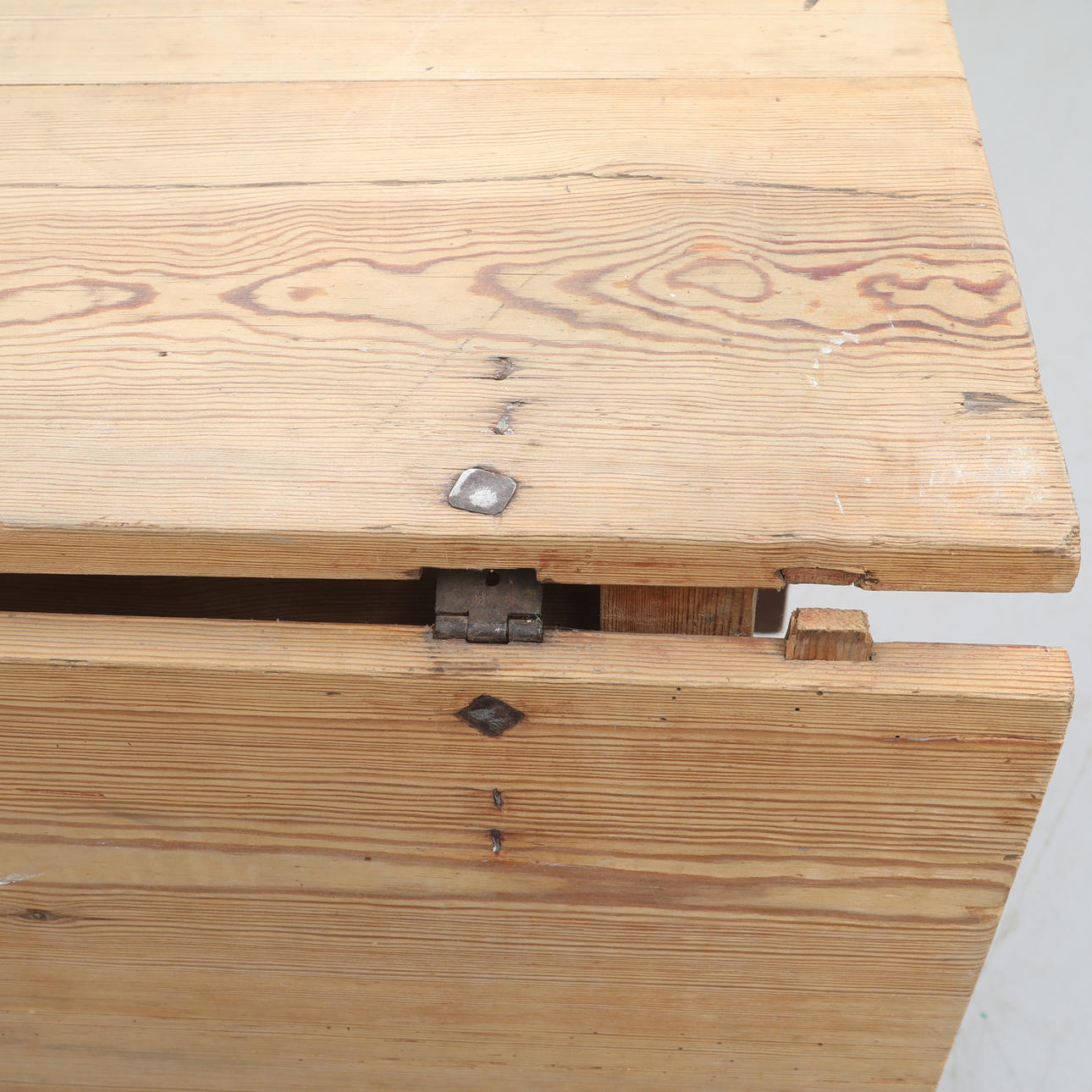 Brugsslitage, ridser og mærker, løst hængsel med en klap, slidt, kasser mangler.