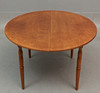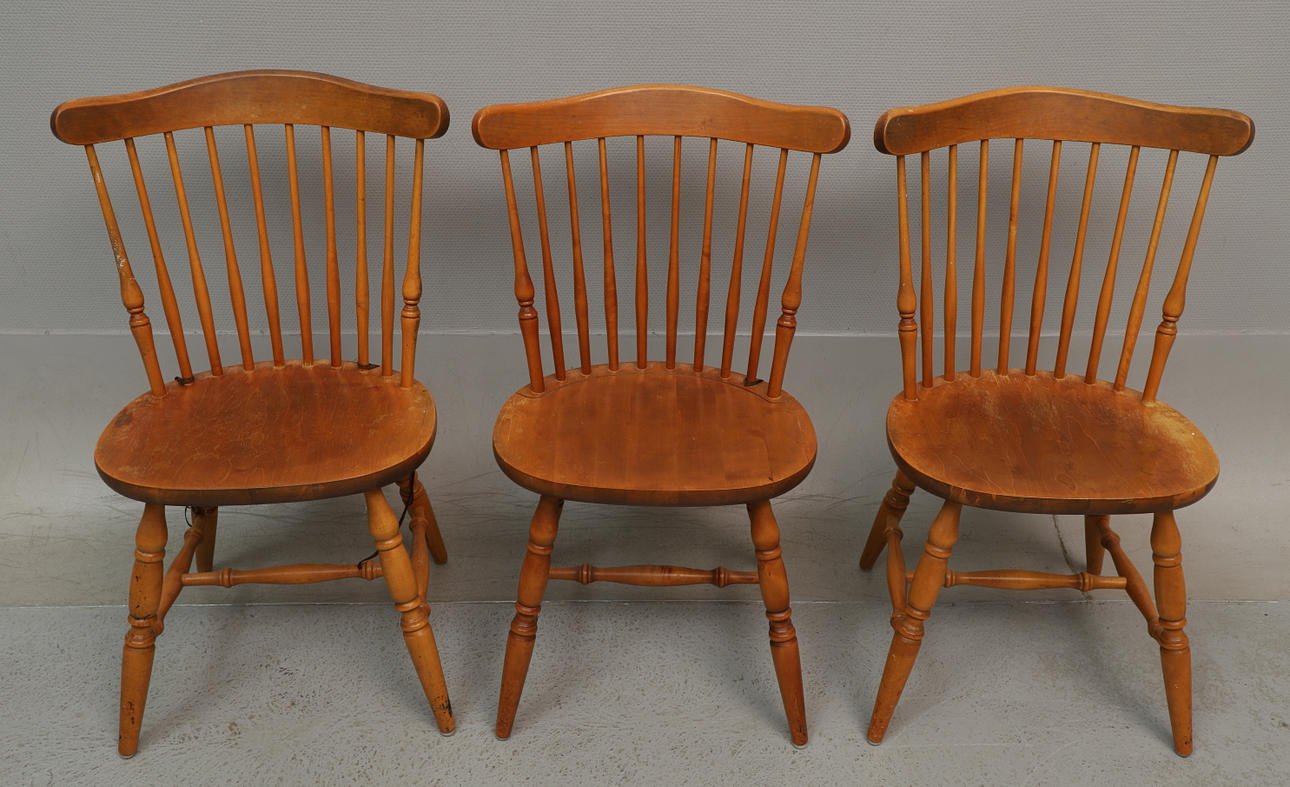 3 stole, ryghøjde ca. 86 cm, sædehøjde ca. 45 cm. Bord, diameter ca. 110 cm, højde ca. 72,5 cm.