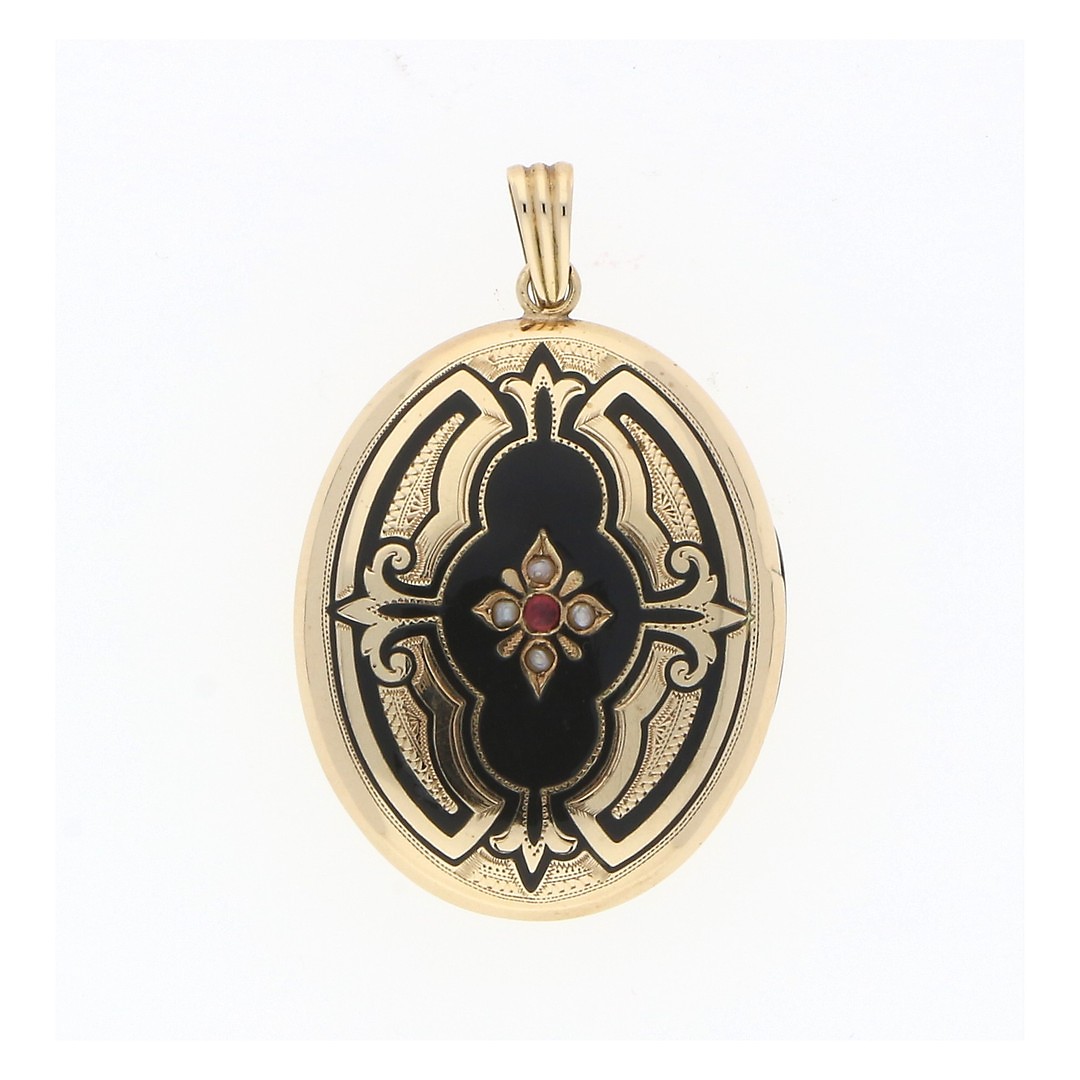 361963. ANTIK MEDALJON, gult guld 585/-.
