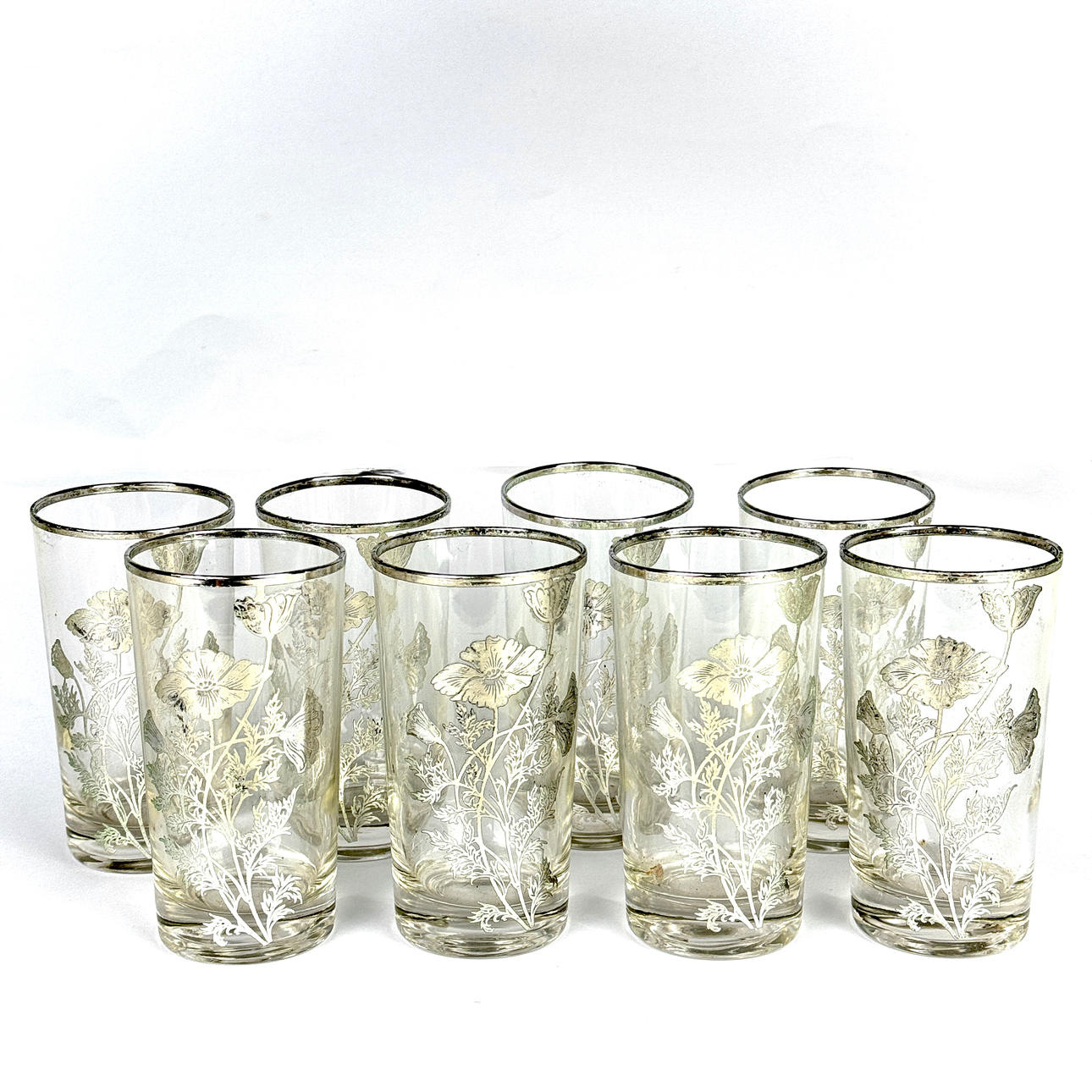 Et sæt af otte hvide metal (testet sølv) overlagede briller.