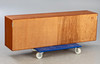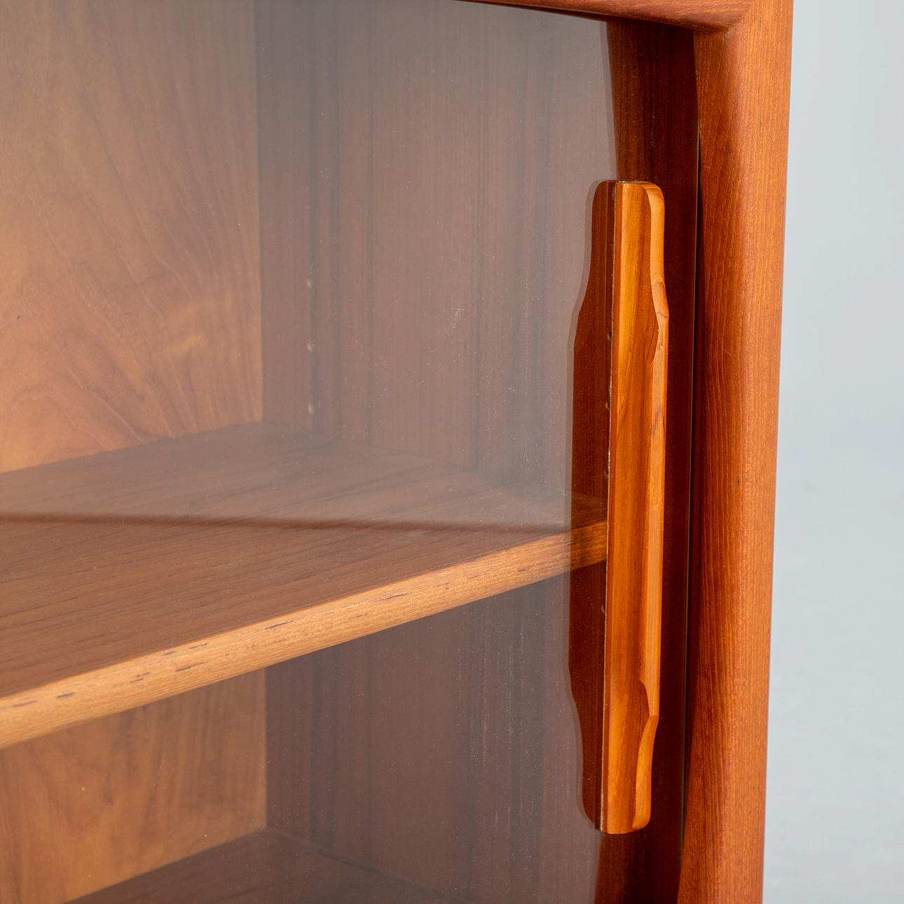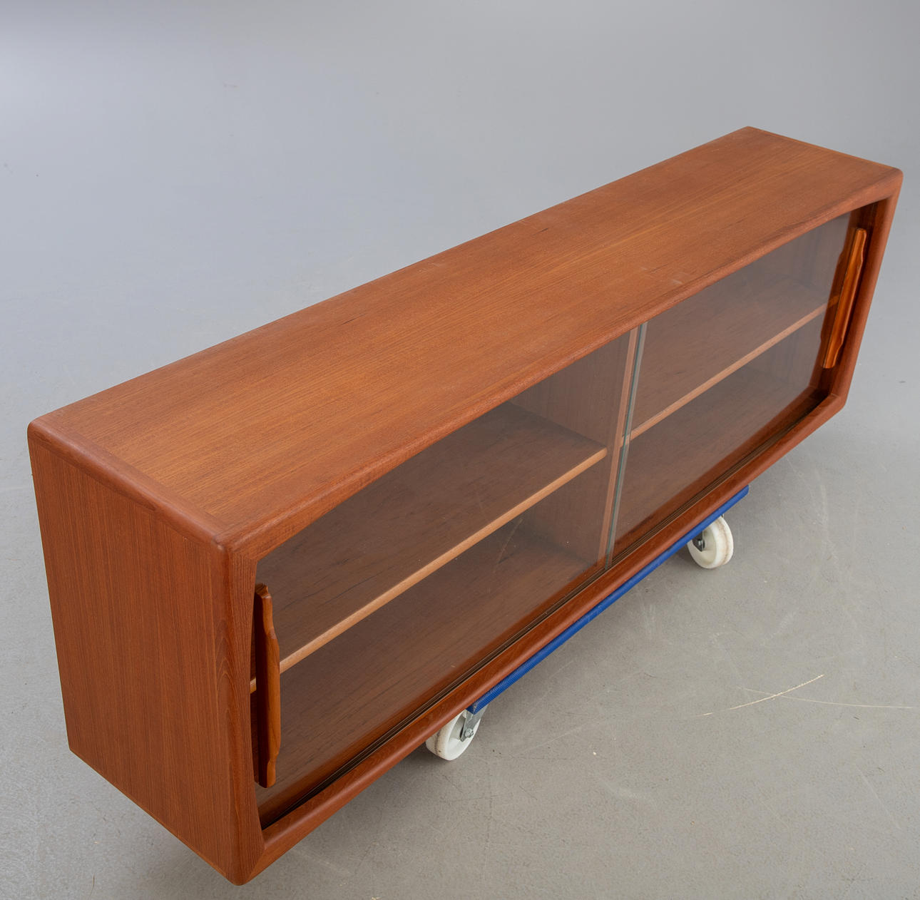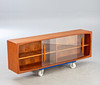 teak og glas. Skydedøre, 2 hylder