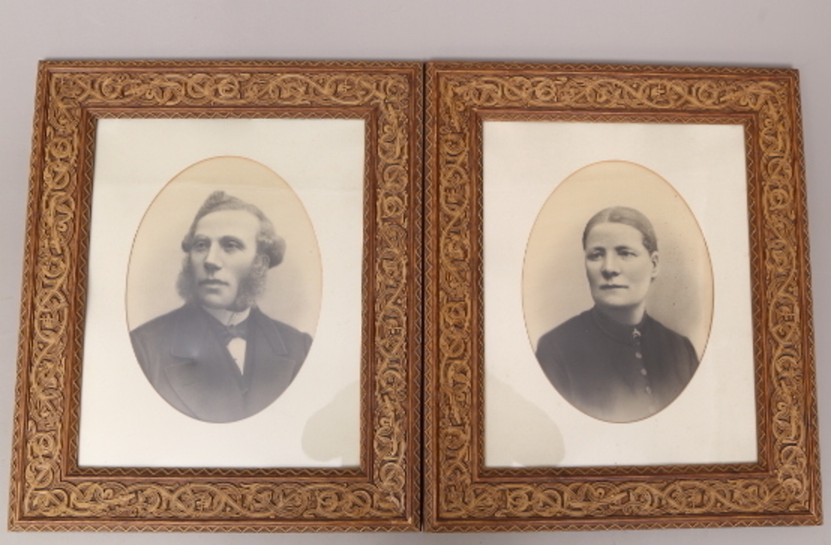 362689. BILLEDRAMMER, et par, træ, glaseret, brun.