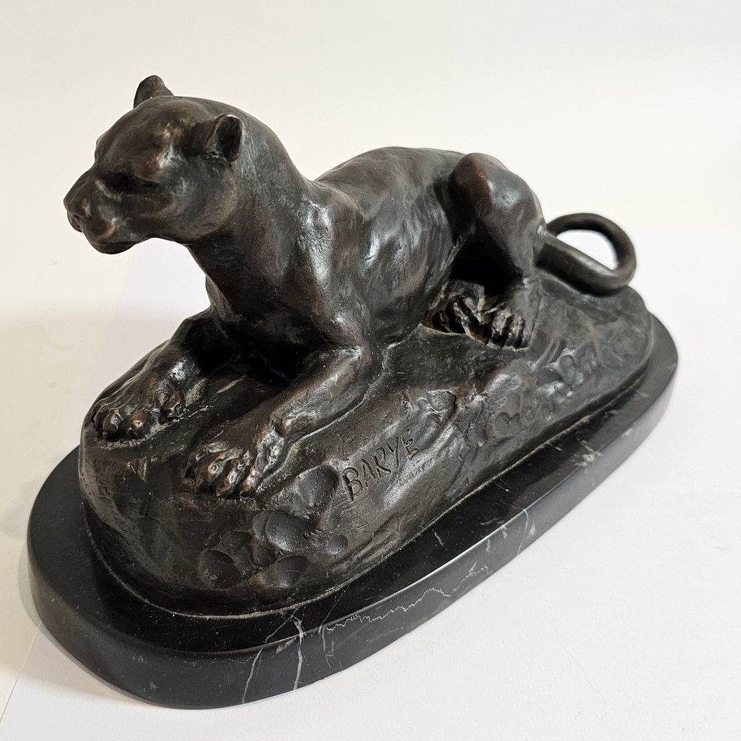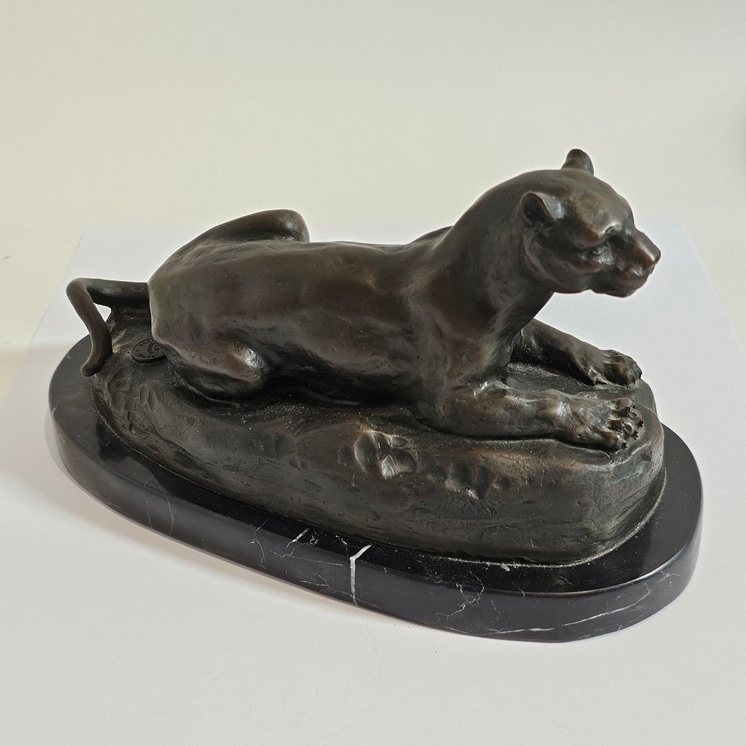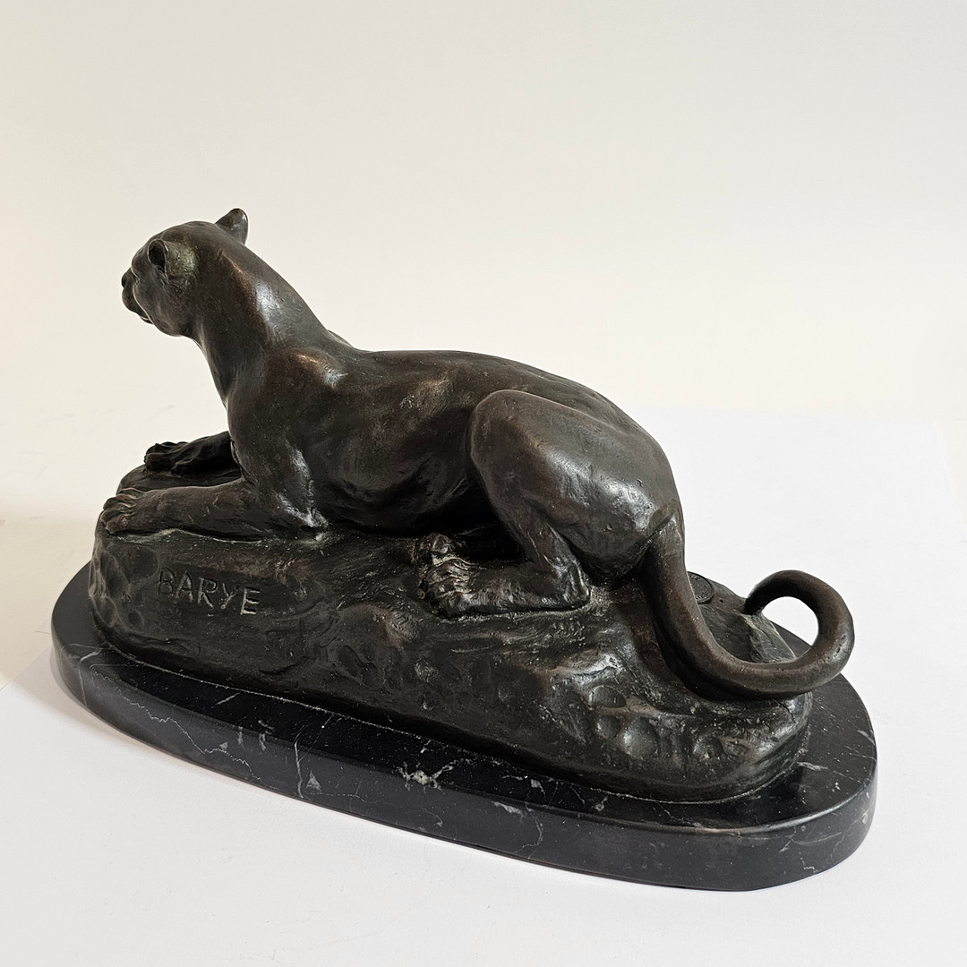 3626953. BARYE. EFTER. „LIGGENDE PANTER“ BRONZESKULPTUR.