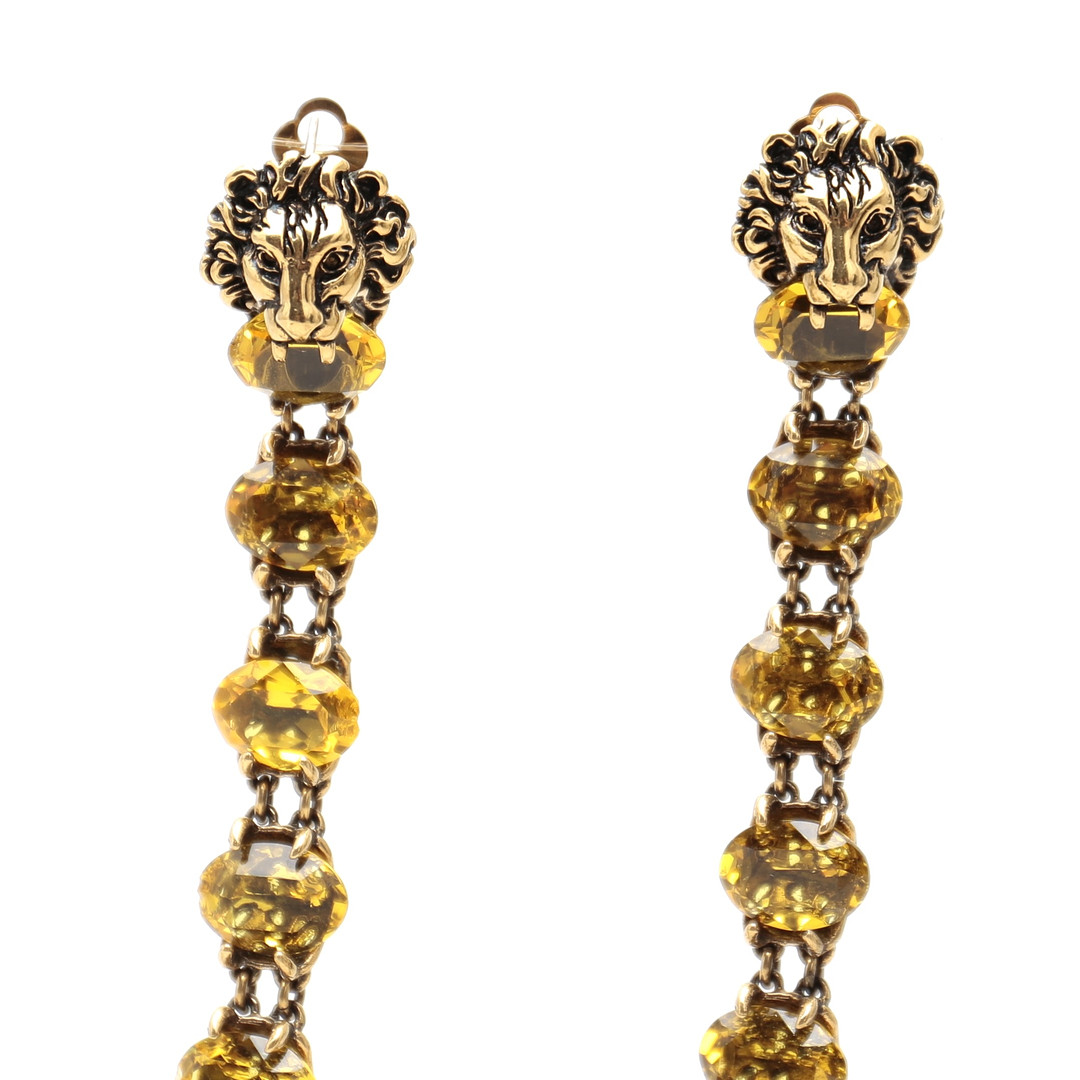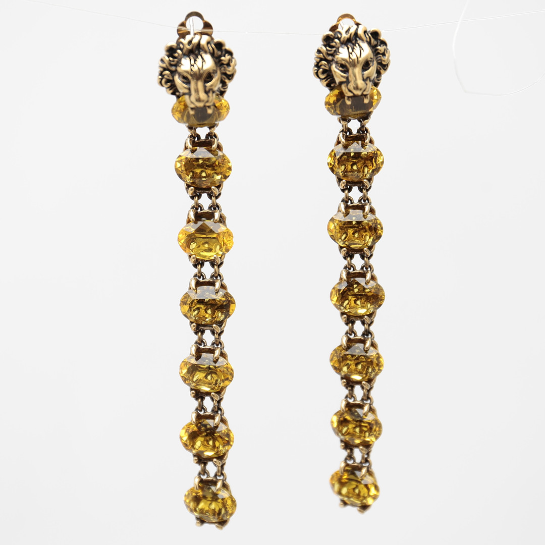 3630093. GUCCI. Lange øreringe med løvehoved.