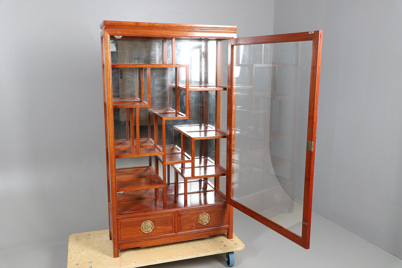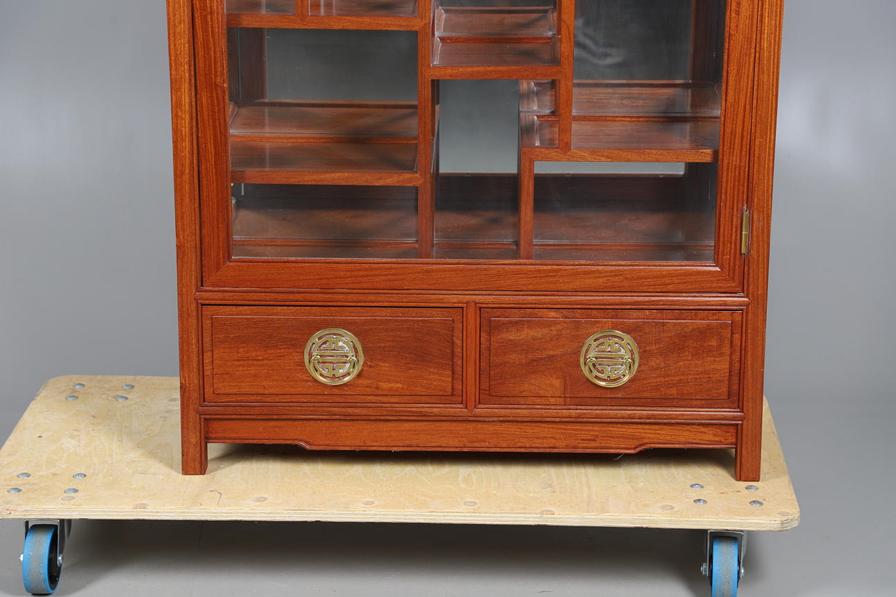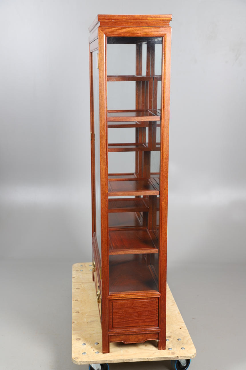 3632771. ET KINESISK HÅRDTTRÆGLASERET VITRINESKAB.