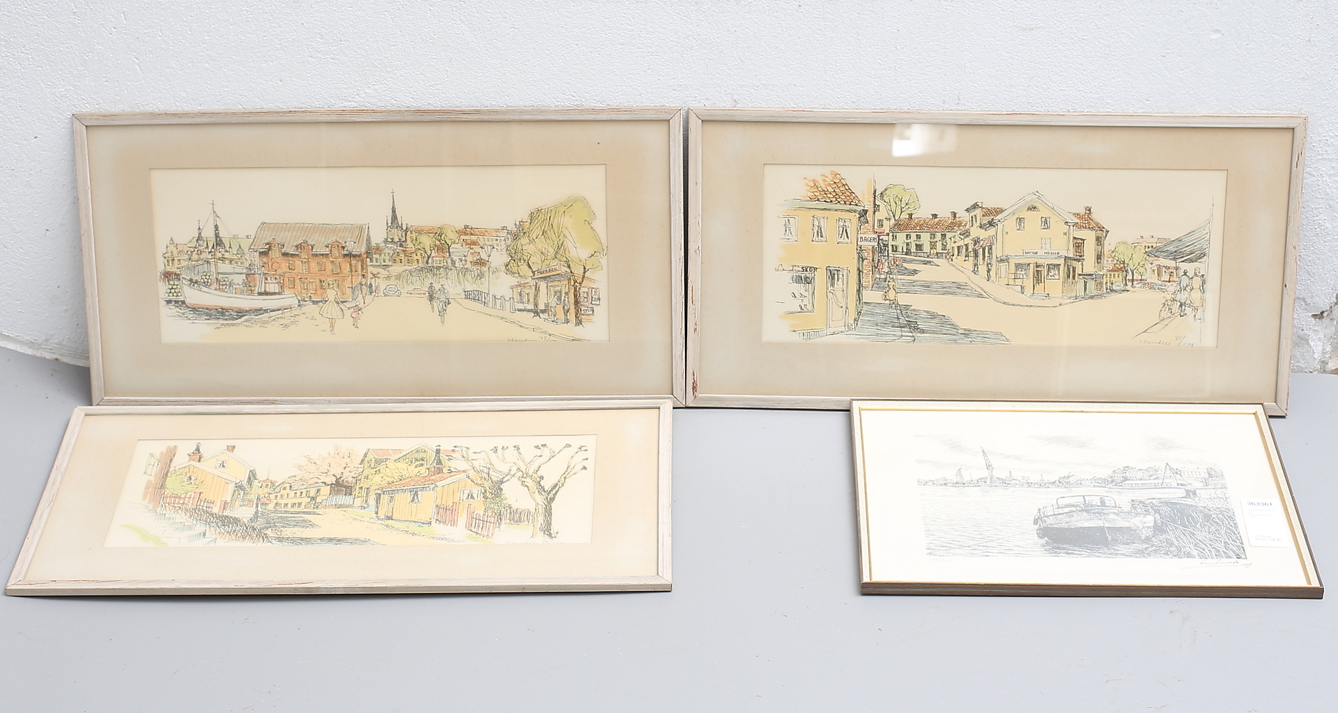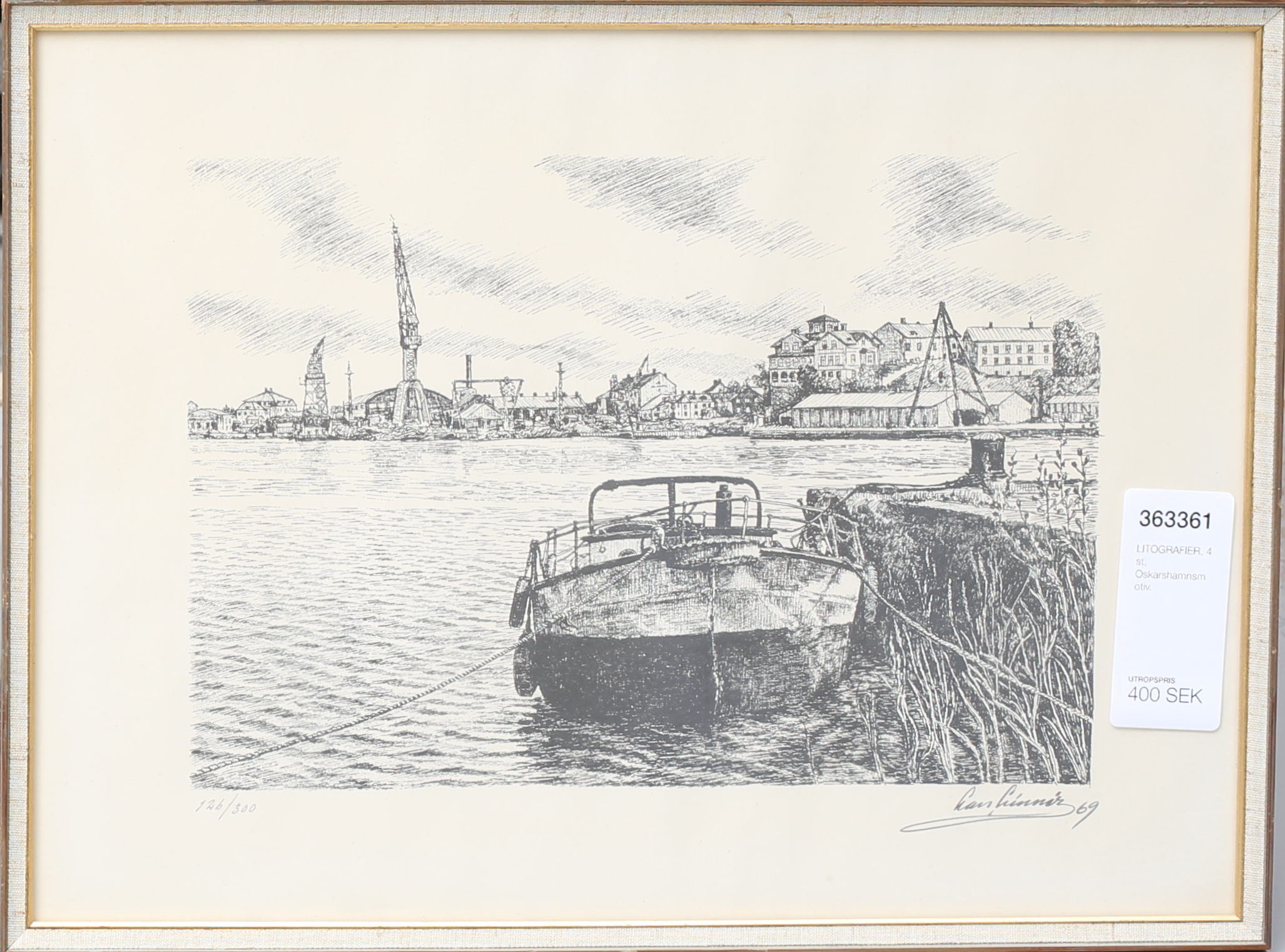 363361. LITOGRAFIER, 4 stk, Oskarshamn motiv.