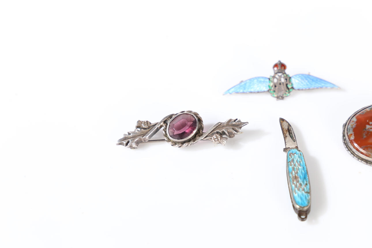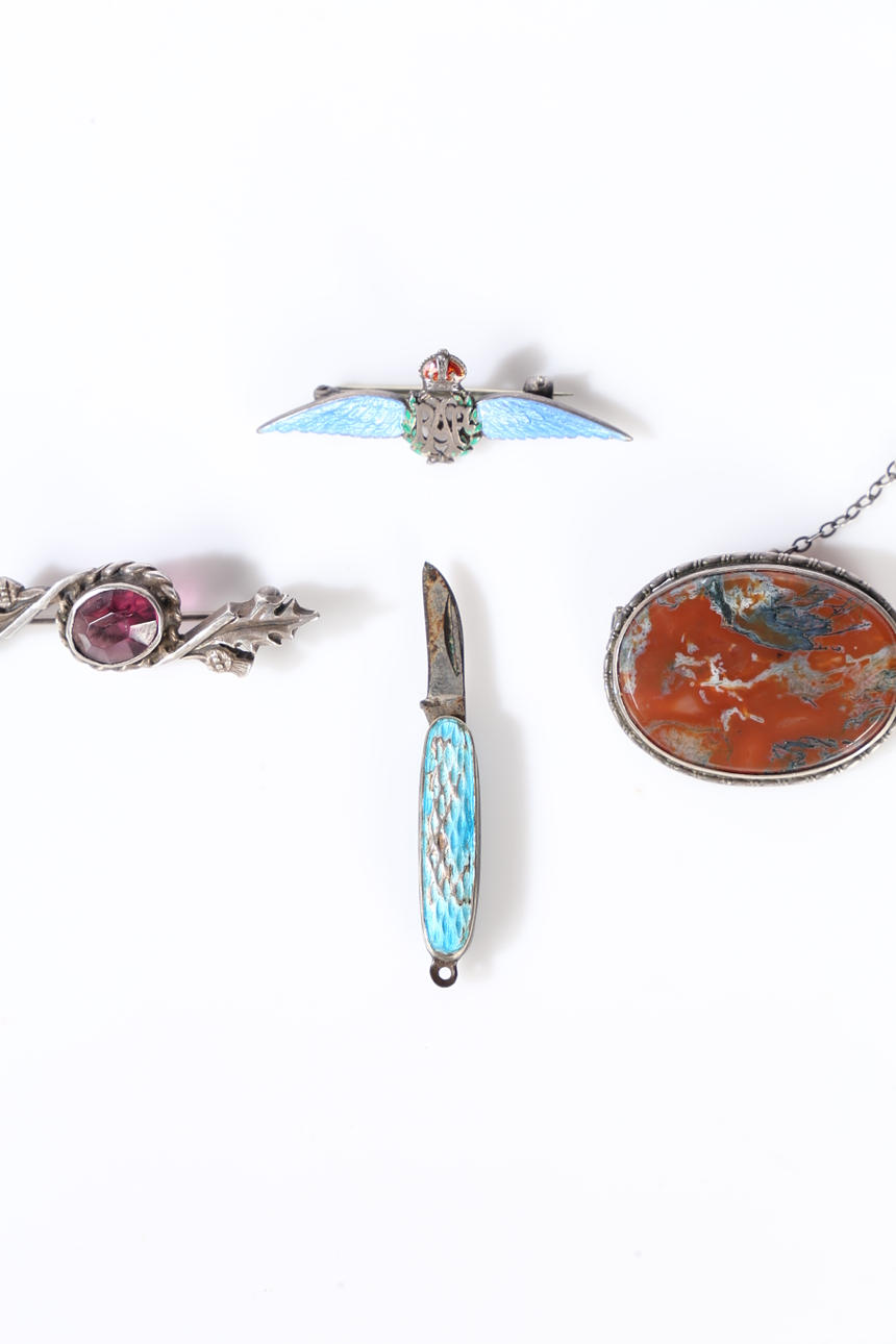 Inkluderer en RAF guilloche-emaljeret kæreversnålbroche. Længde 41mm. Stemplet 'sølv'.
