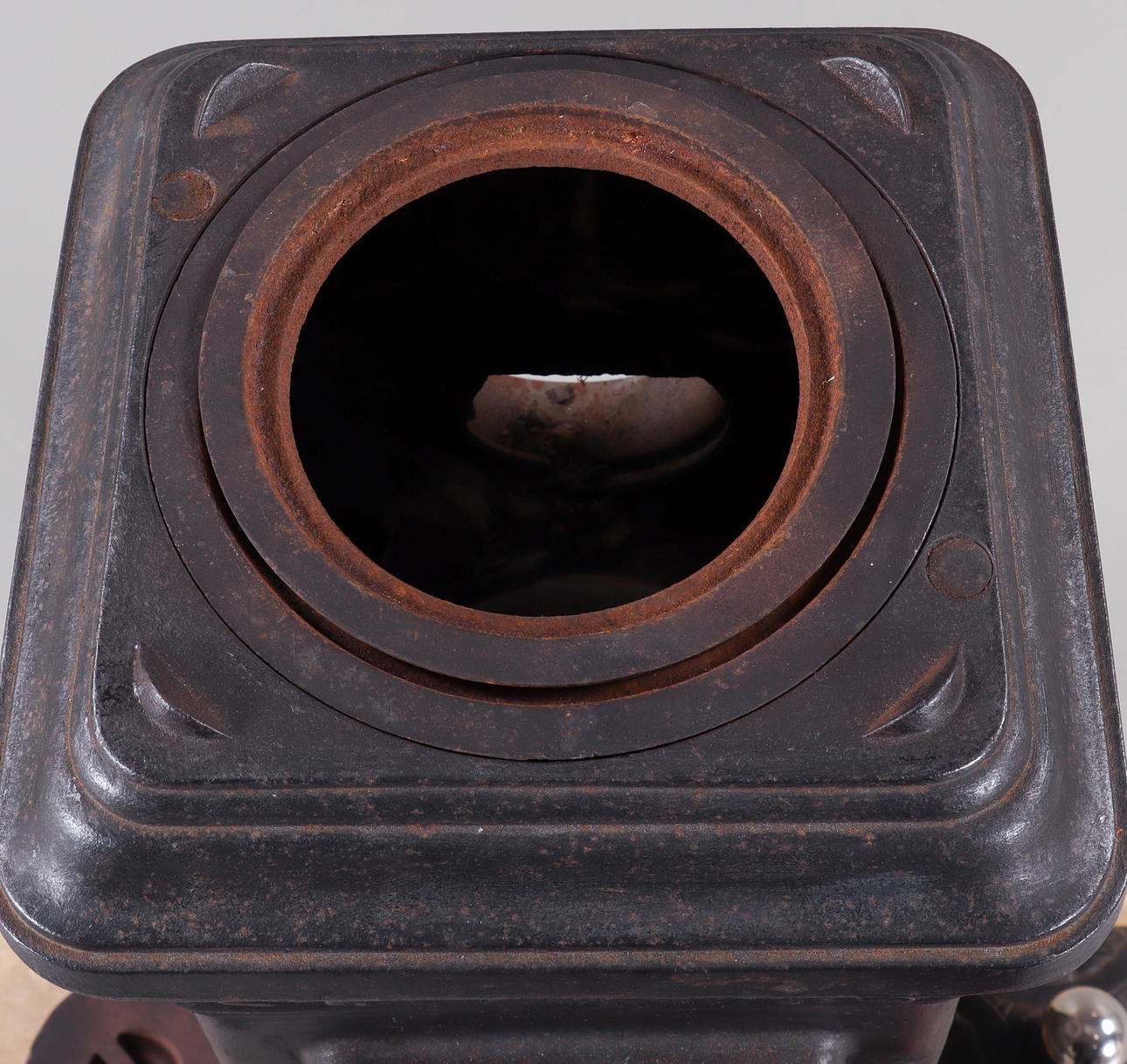 Knapper til hullerne mangler, støbegods på indersiden mangler stykkevis, korrosion.