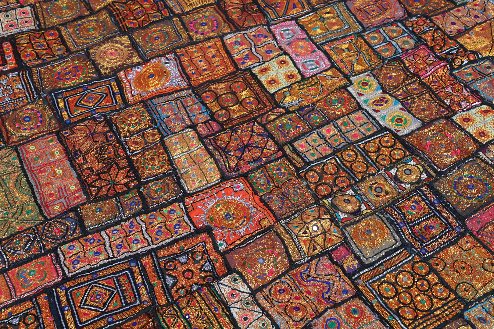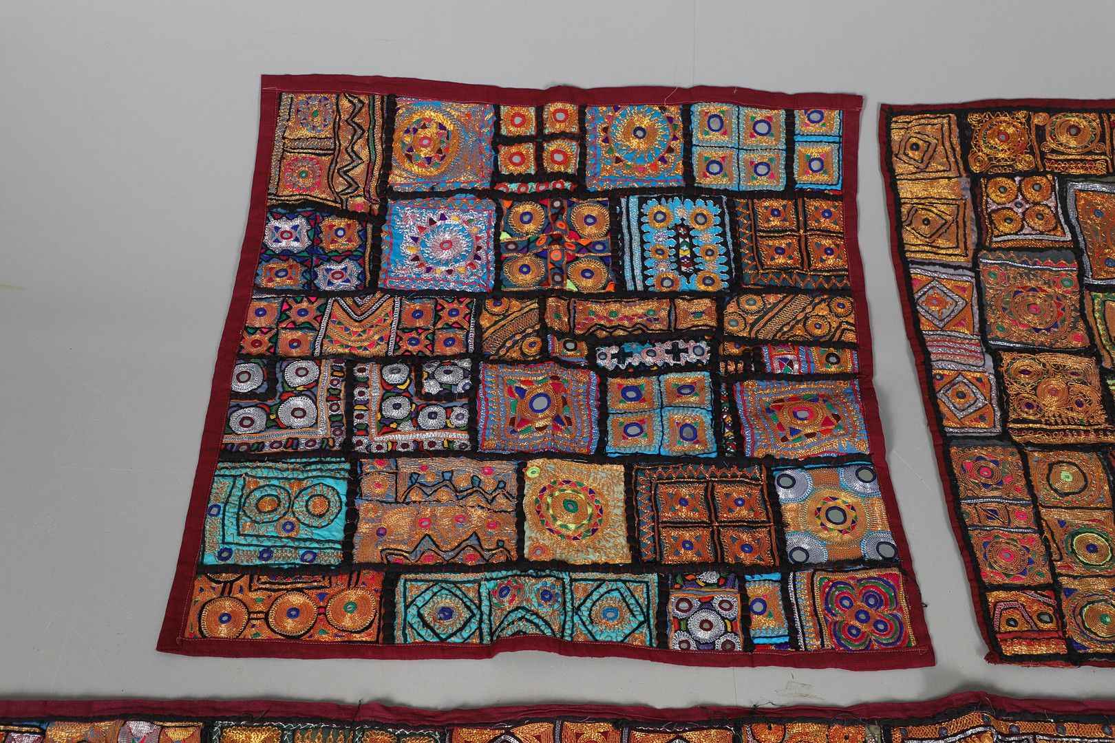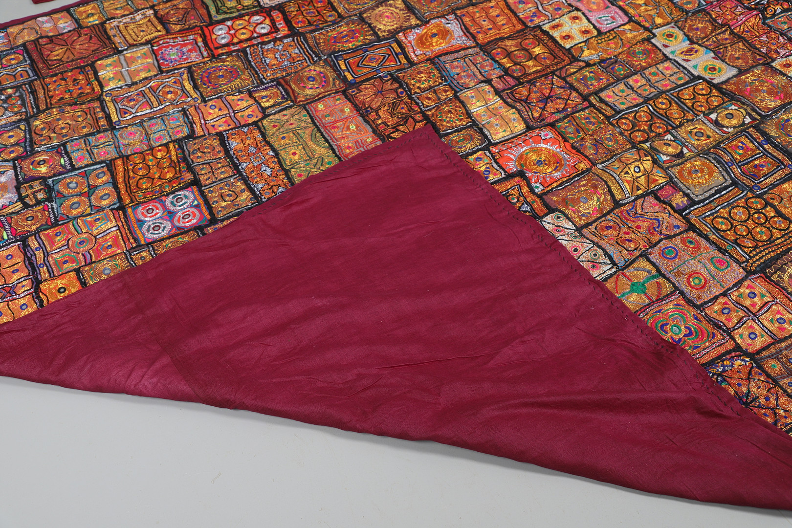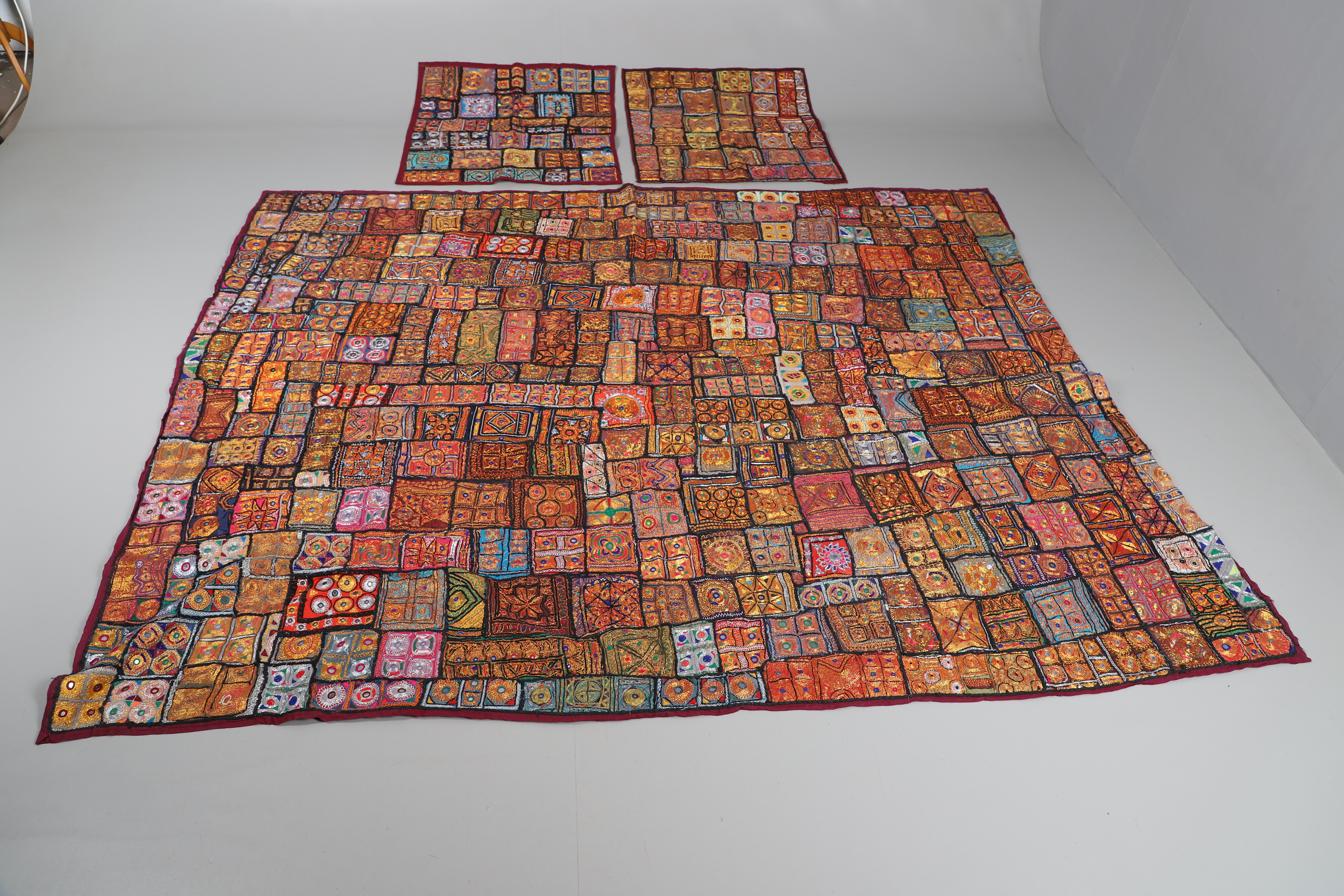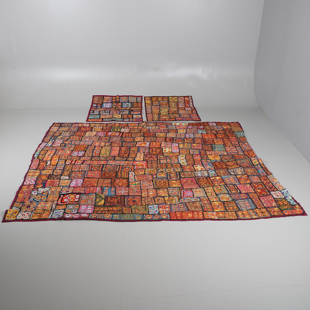3642027. ANTIK INDISK SENGETÆPPE & MATCHENDE PANELER.