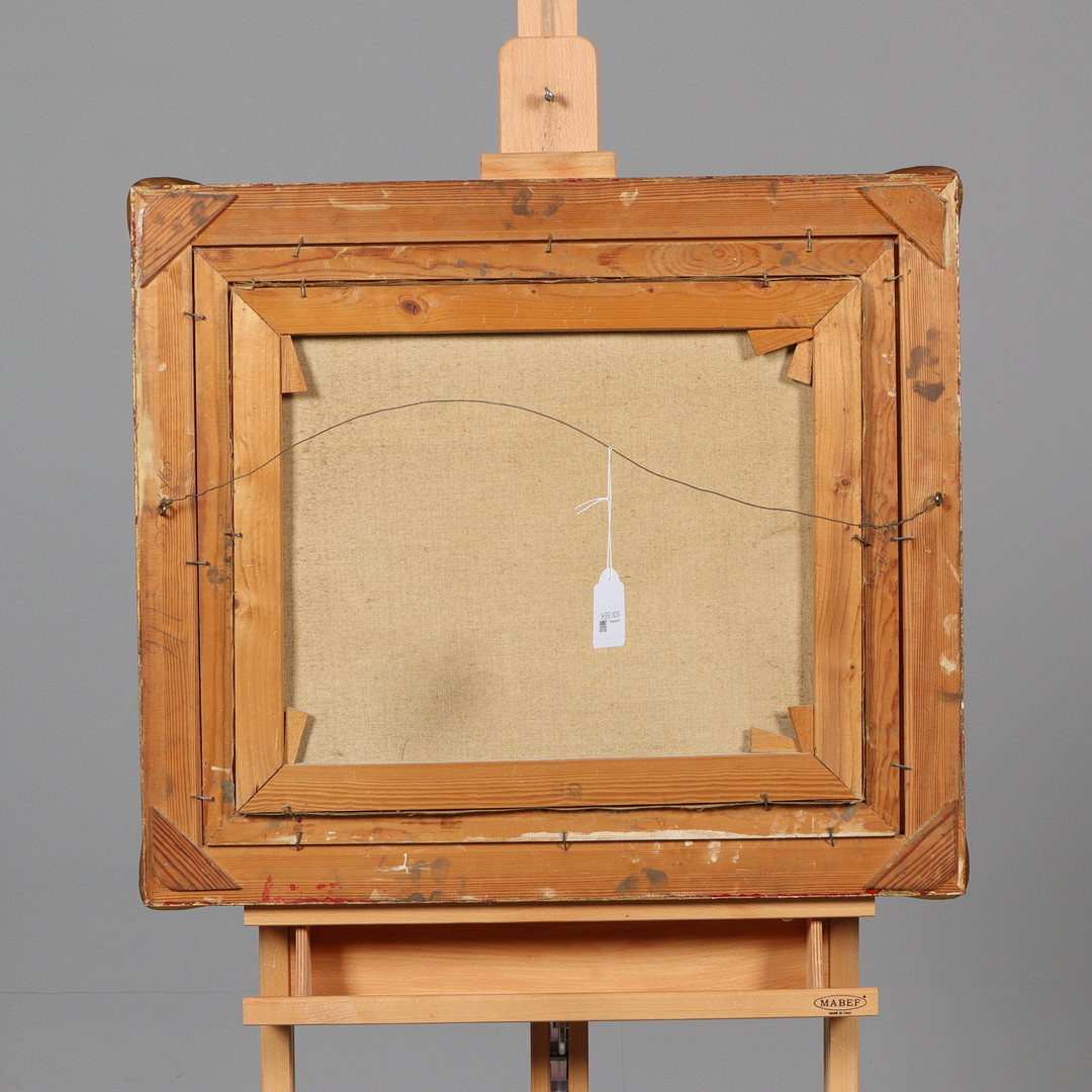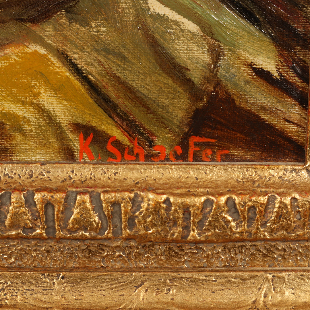 3648738. KARL SCHAEFER. OLIE PÅ LÆRRED, signeret.