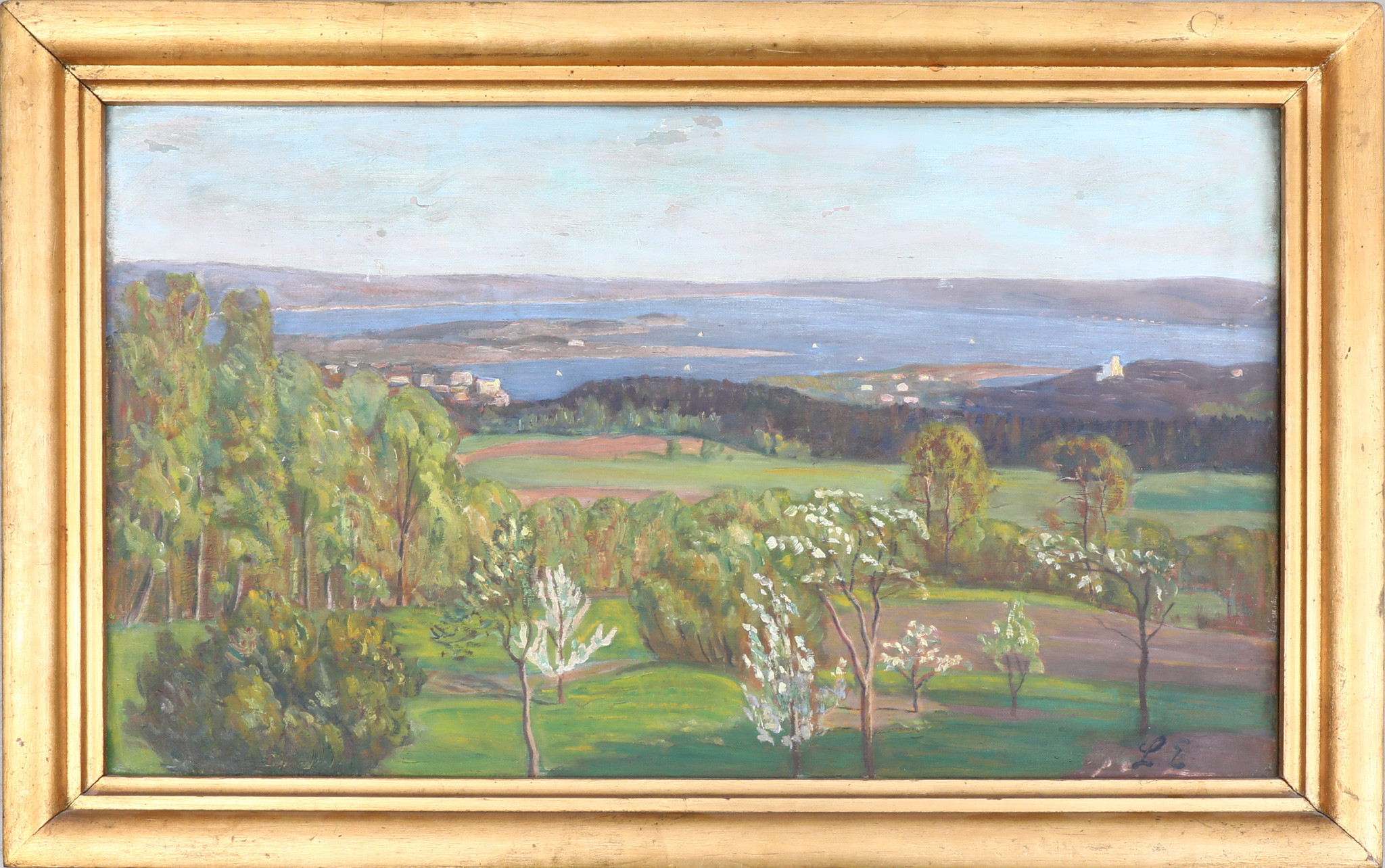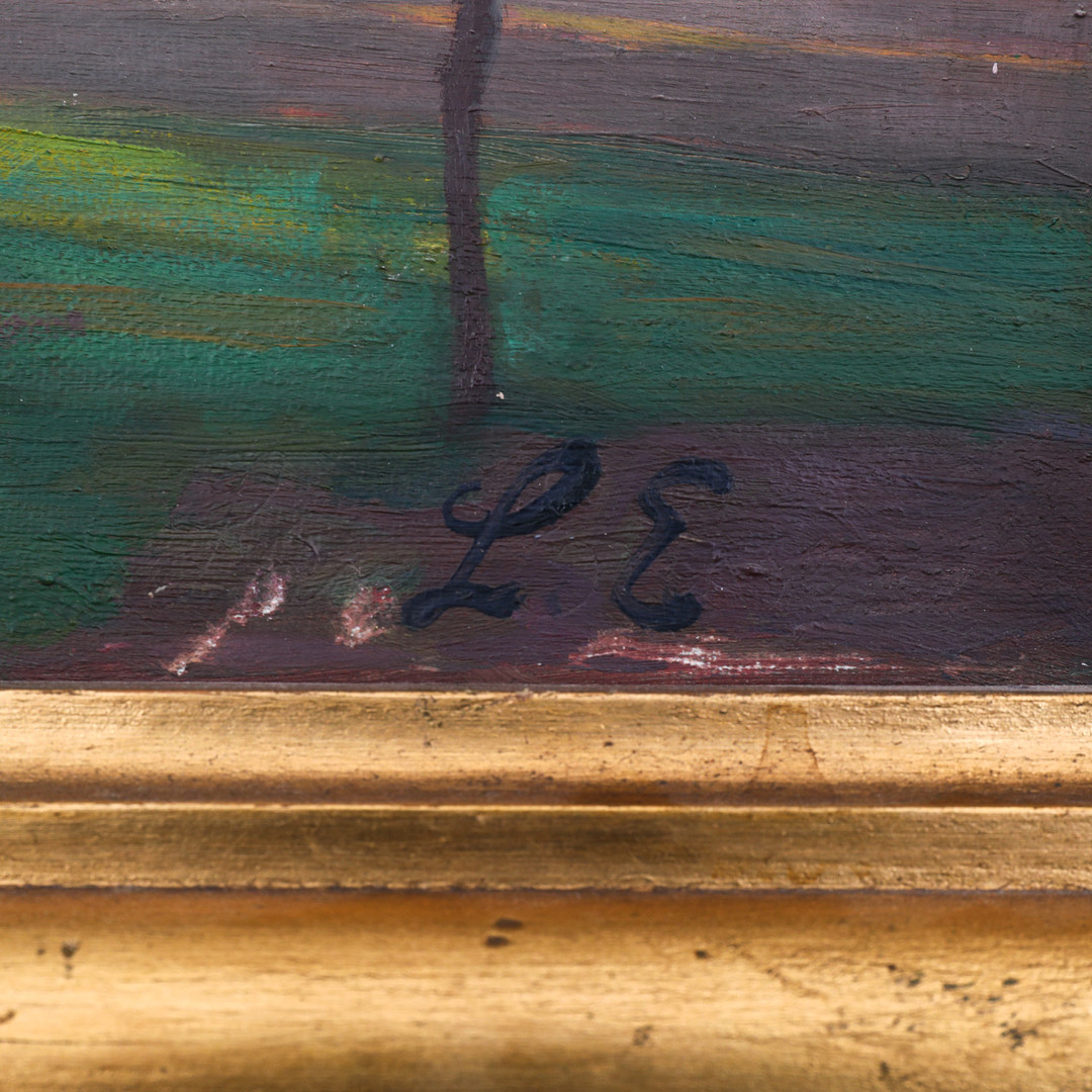 3648889. OIDENTIFIERAD KONSTNÄR. olie på lærred, monogram signeret LE.