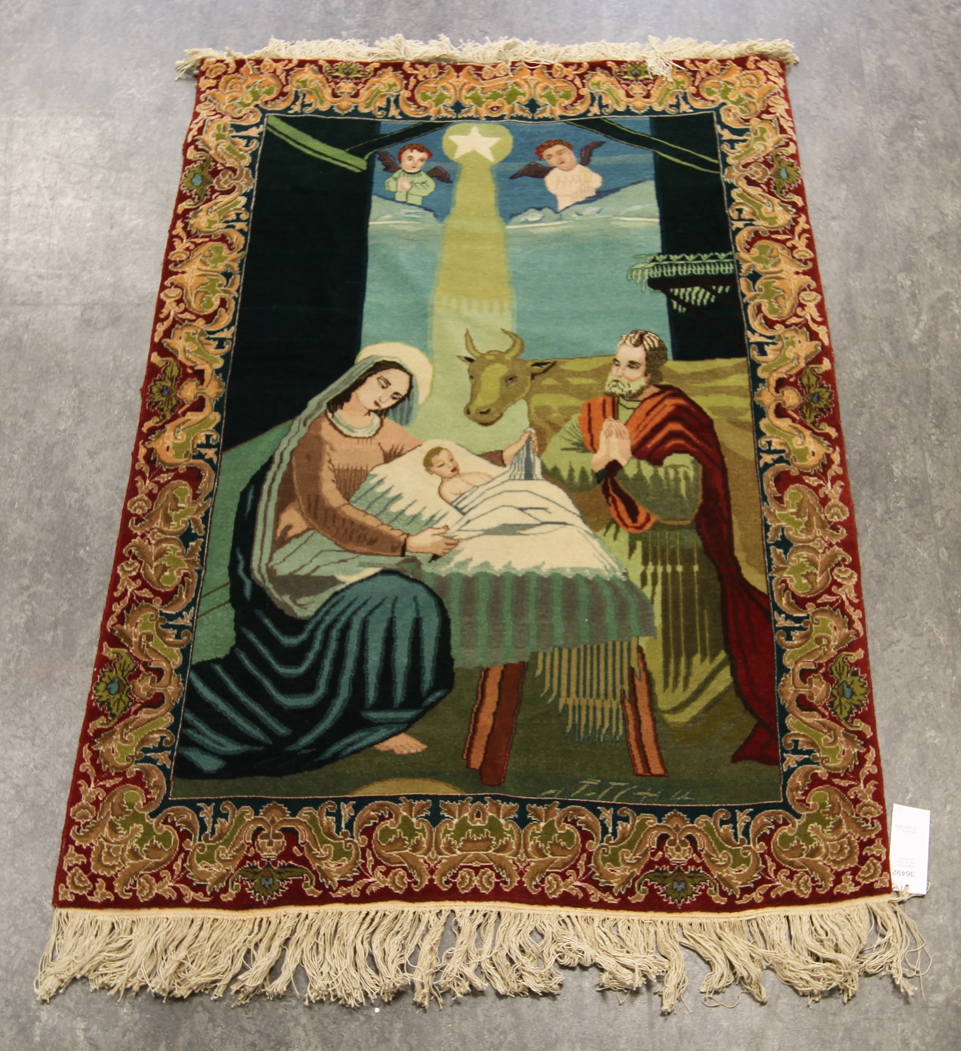 36492. ORIENTALSK TÆPPE, figural, Jesu fødsel.