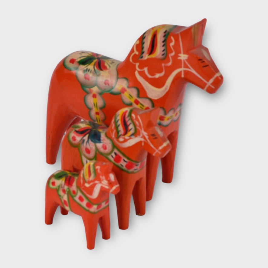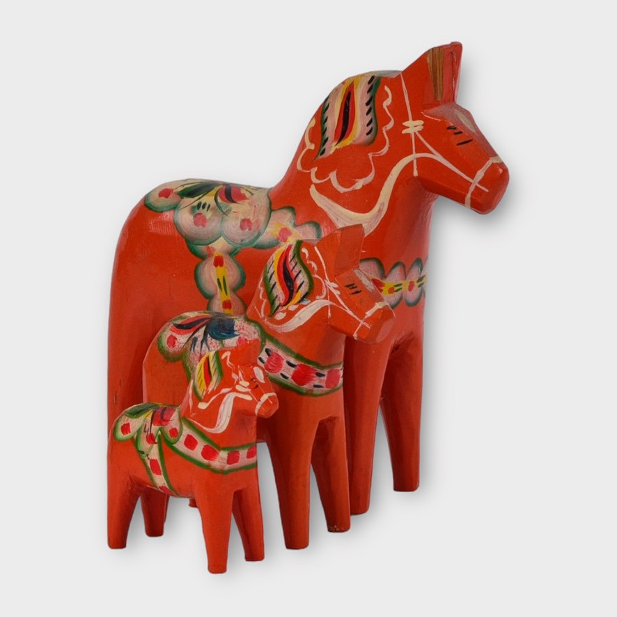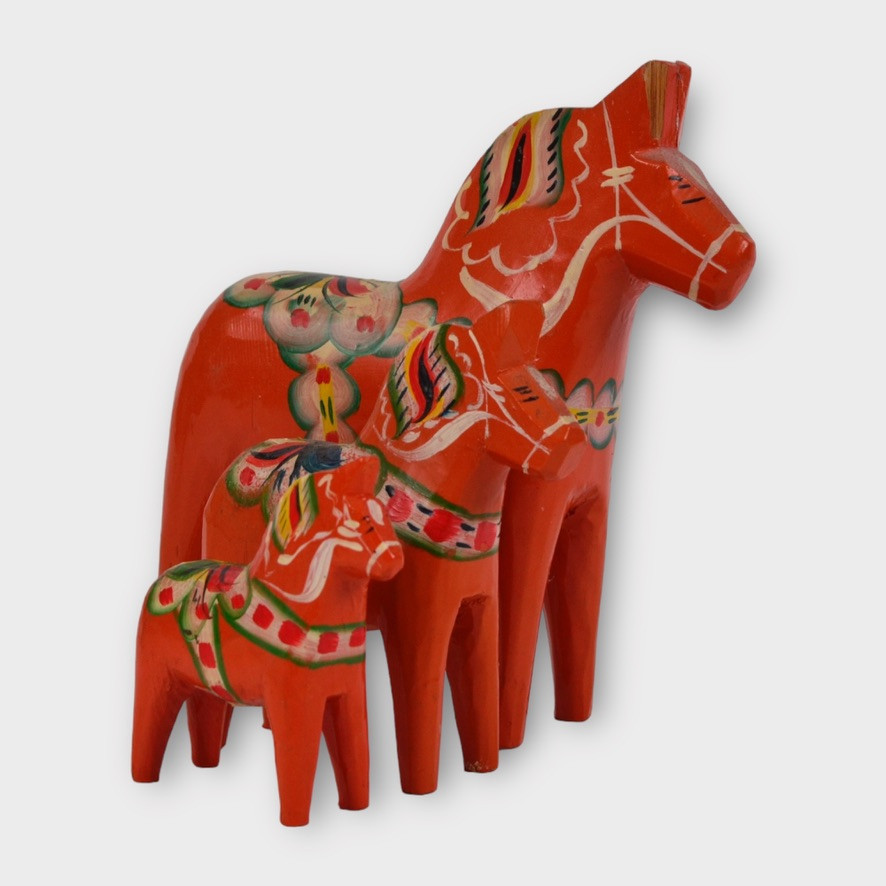 3650058. DALAHESTE, 3 stk., malet træ, 20. århundrede.