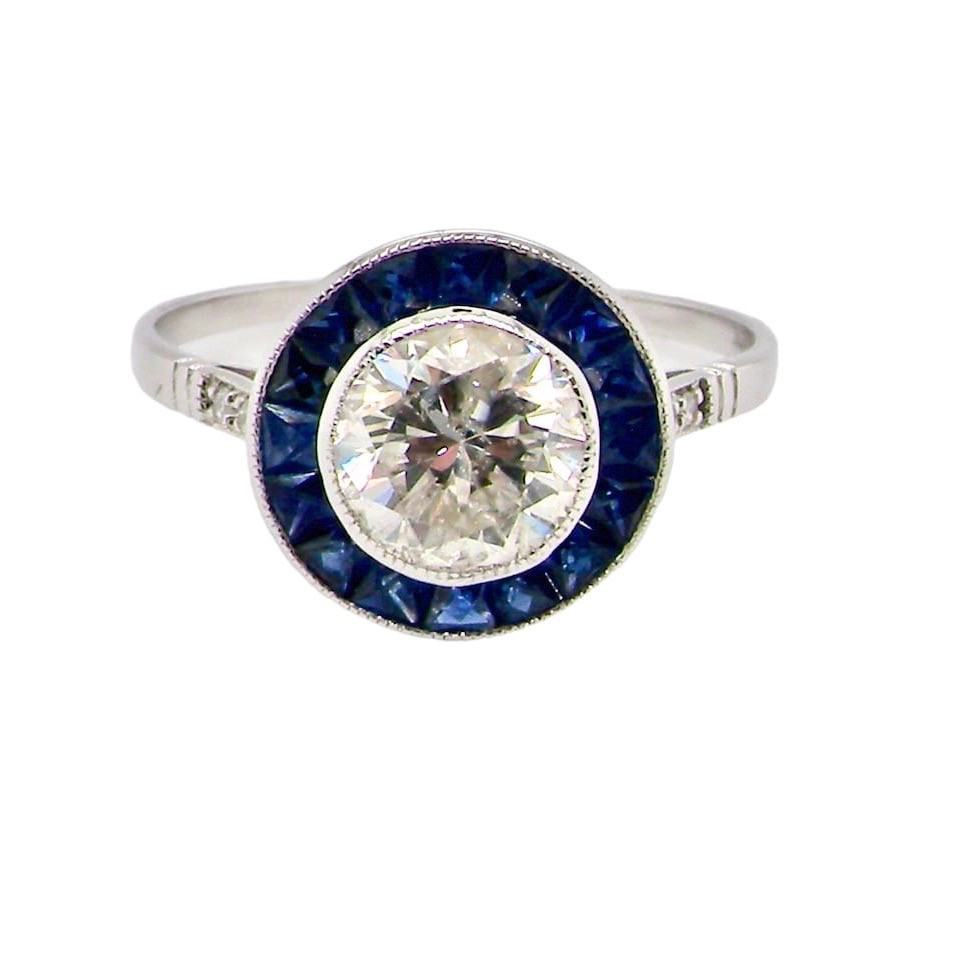 3653683. 18KT HVIDGULD, SAFIR & DIAMANT RING.
