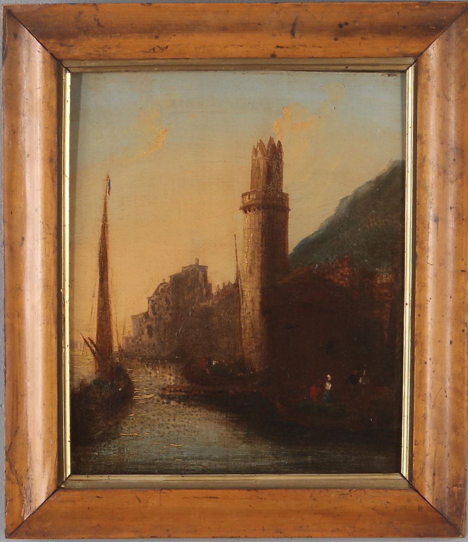365512. OIDENTIFIERAD KONSTNÄR. Bymotiv, olie på lærred, usigneret.