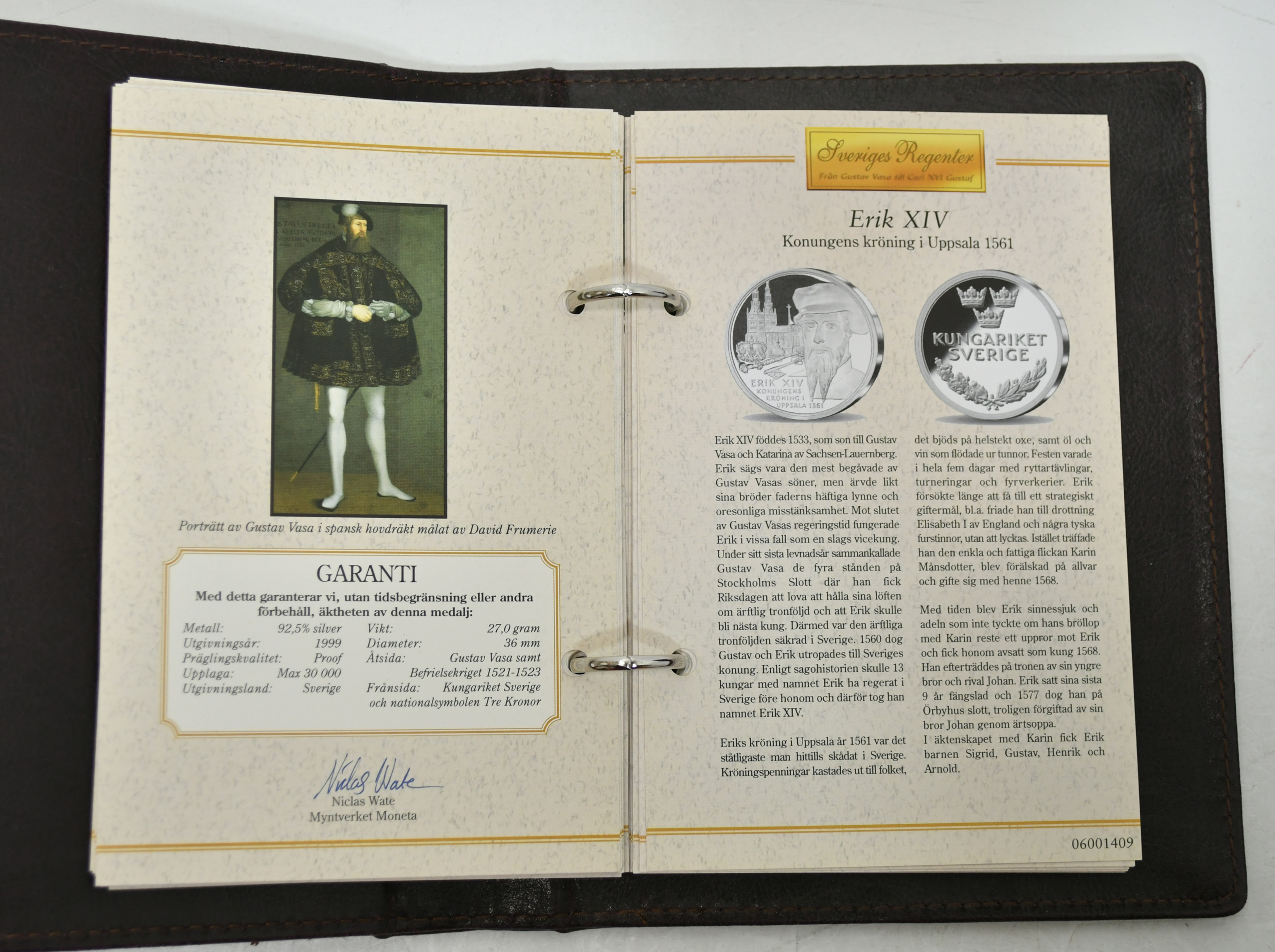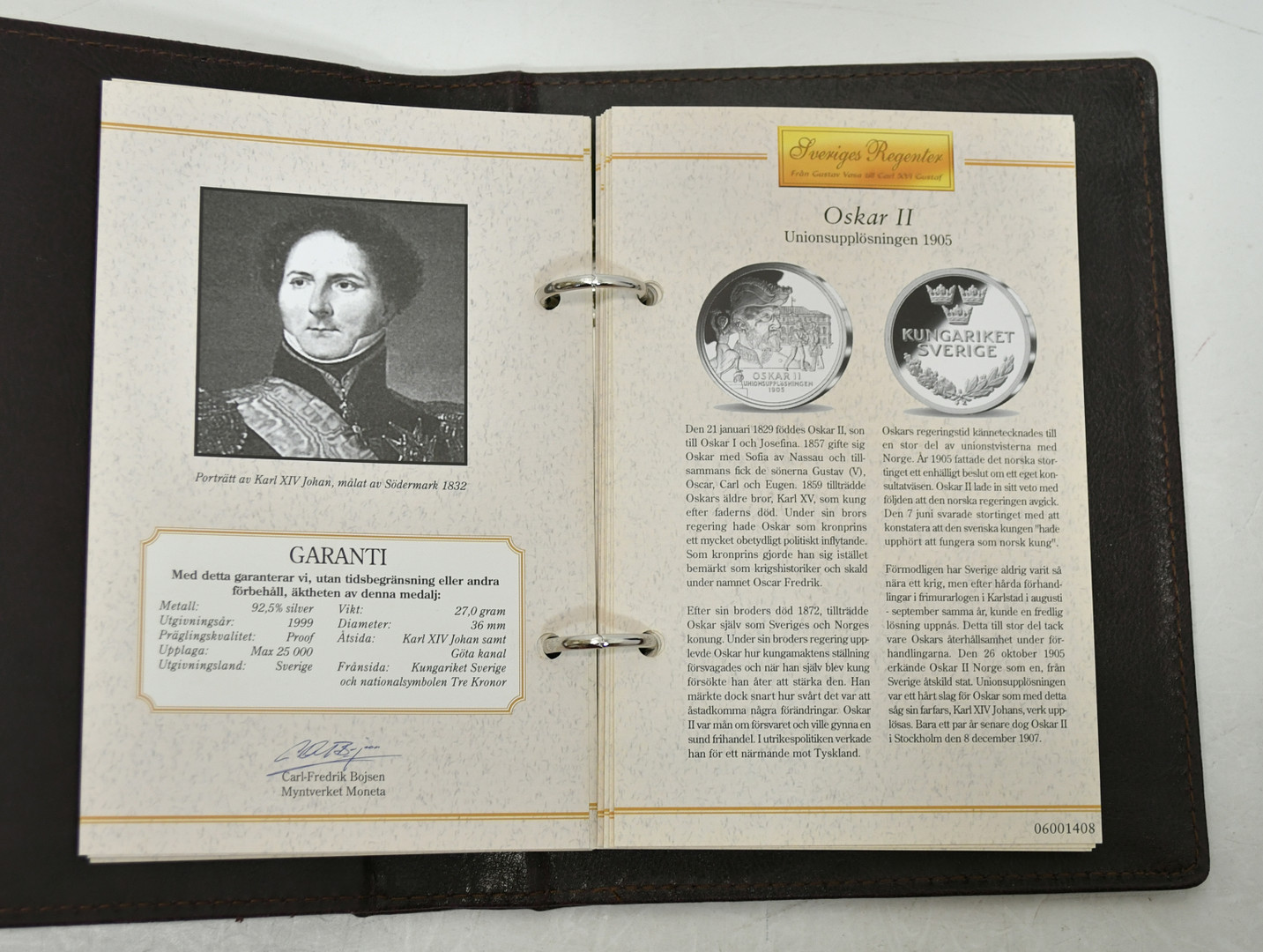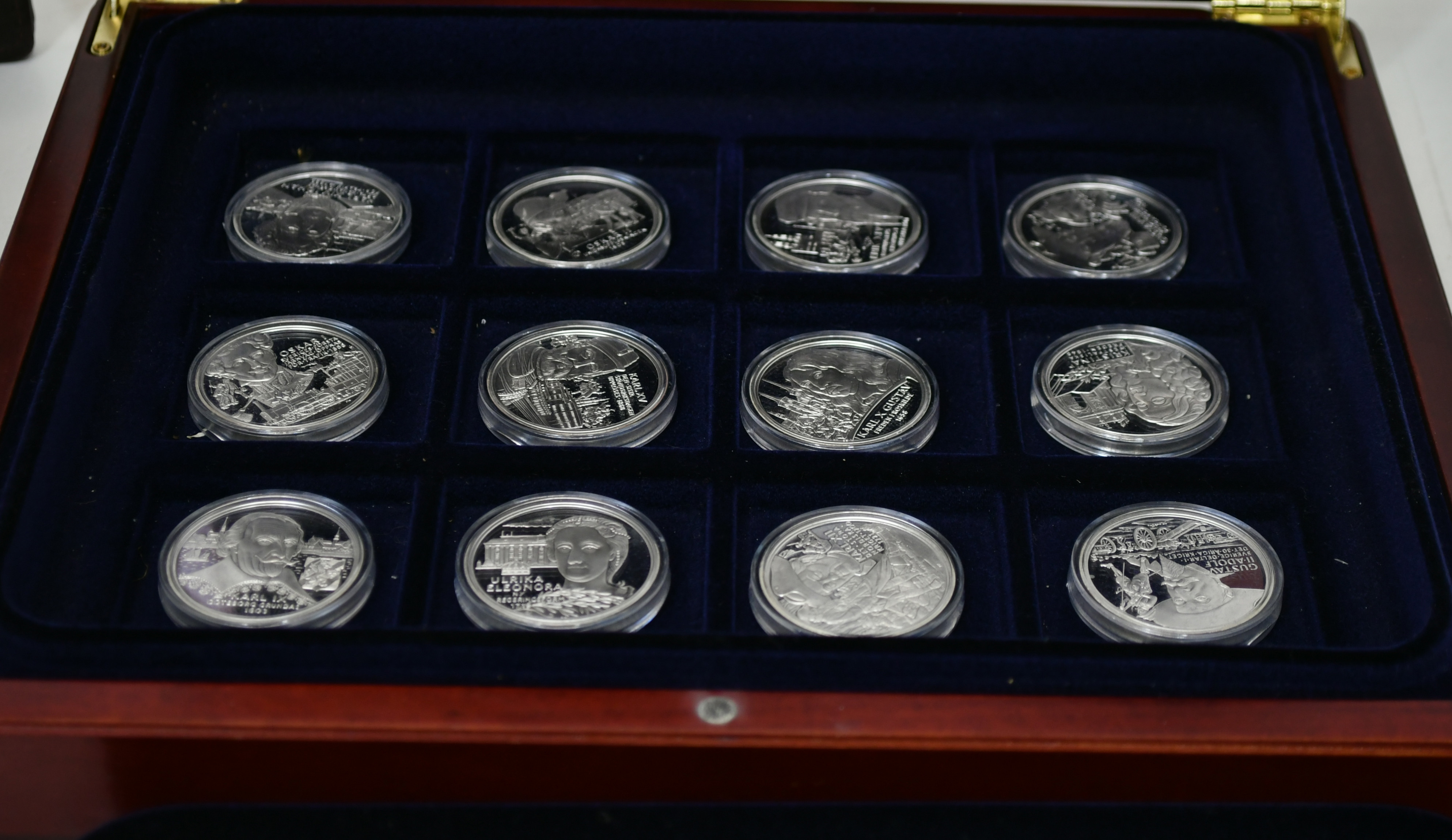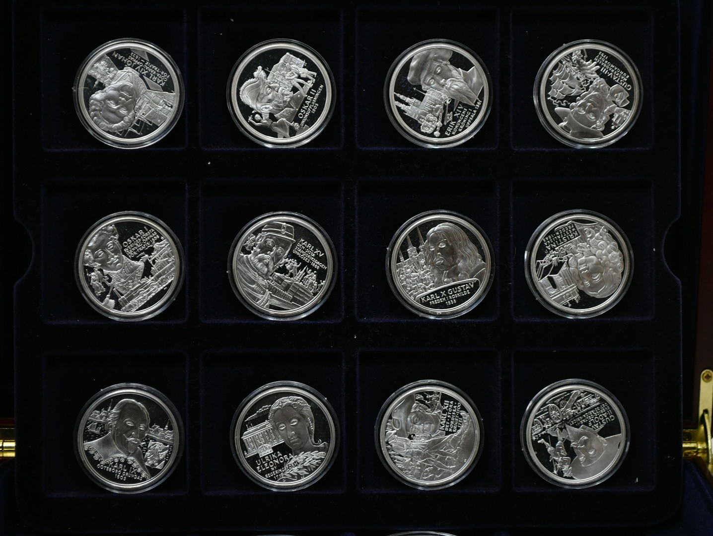 3655477. Regenter af Sverige. 36 Sølv erindringsmedaljer med schatull.